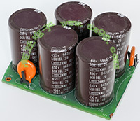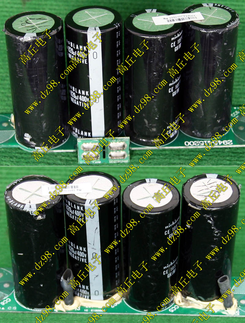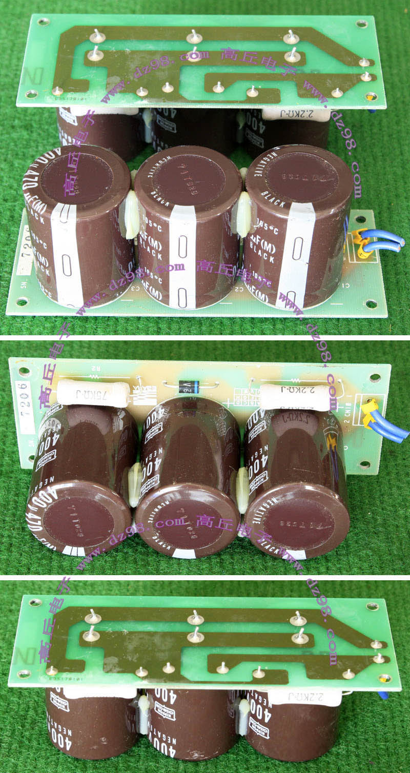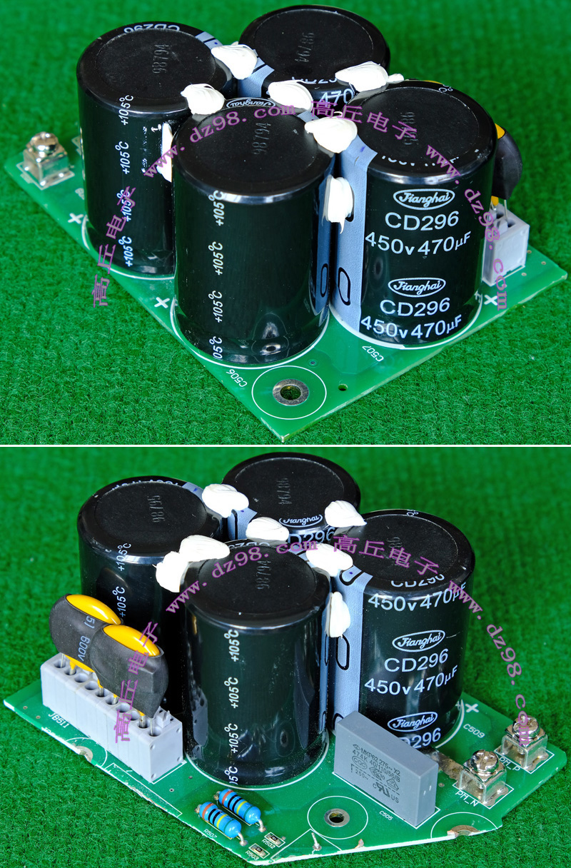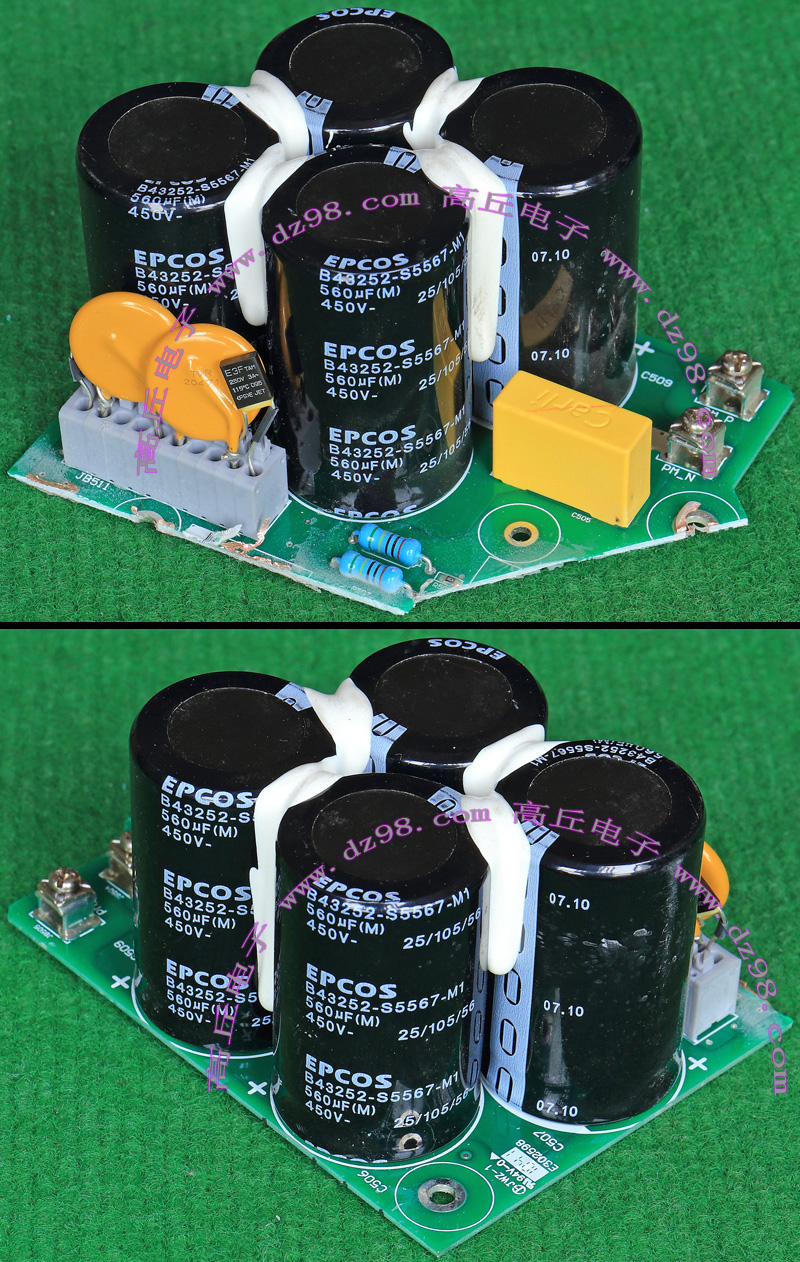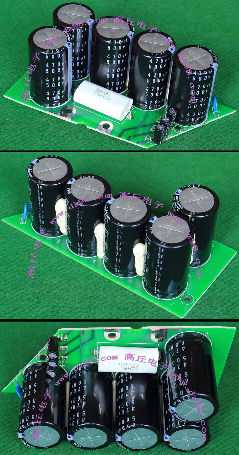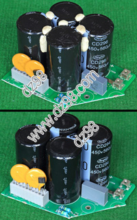 全新电源板切下连4只电容重量约400克,板上装配500V/470uF电容4只,电容直径35.5毫米,高度61毫米。带板发货送板上1只700V/1uF无极电容。