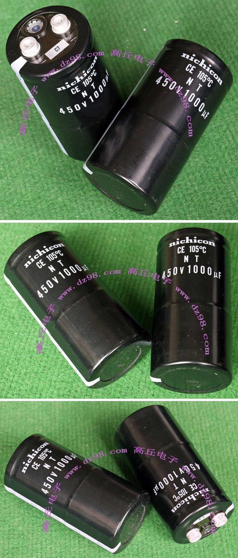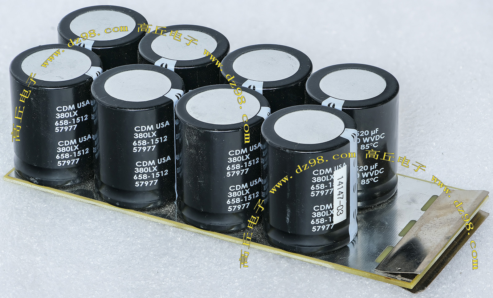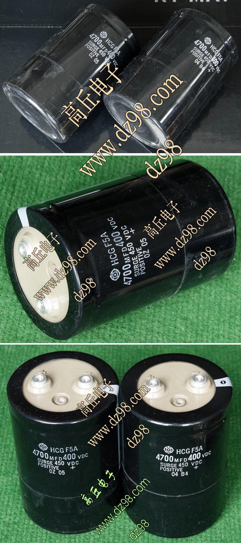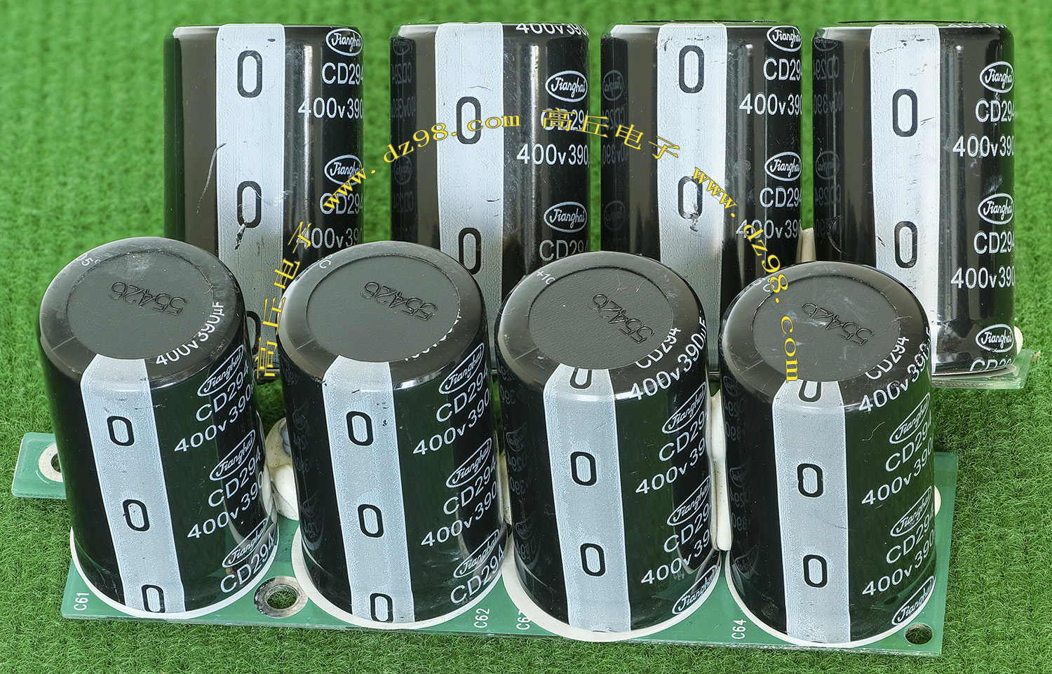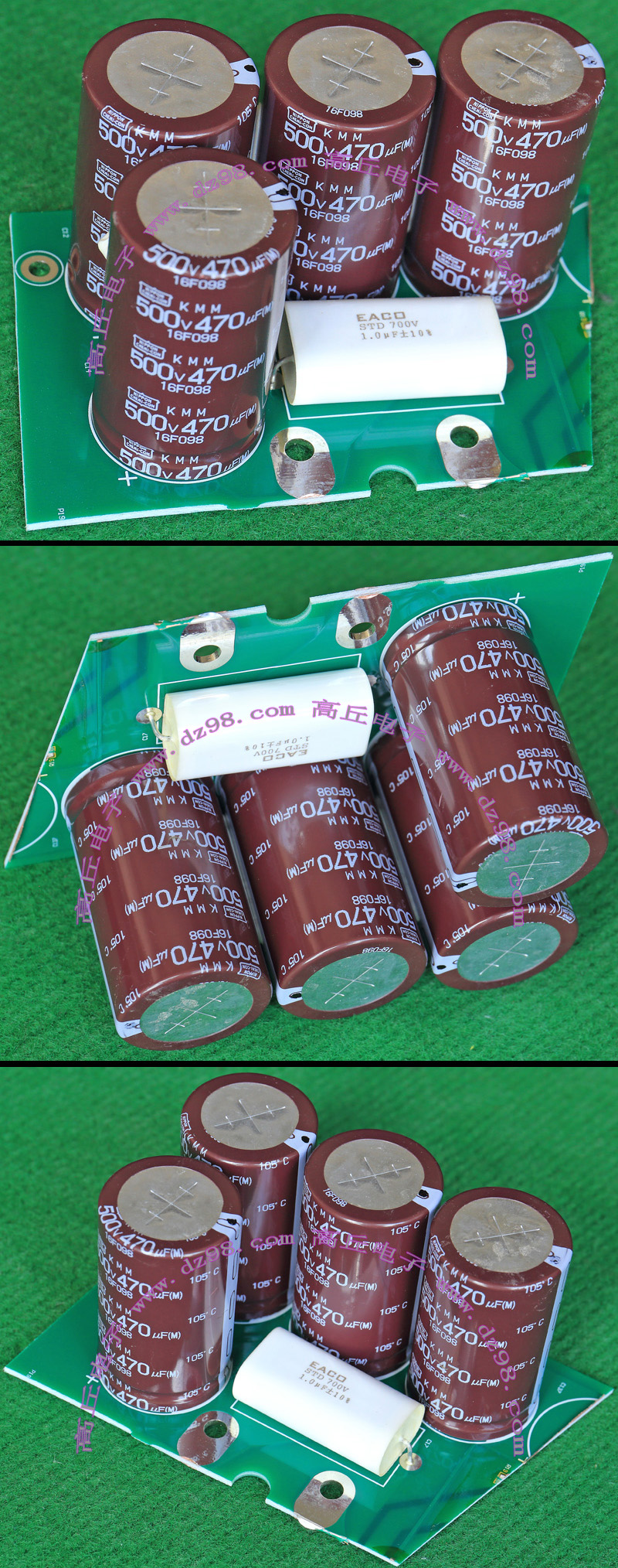 全新电源板切下连4只电容重量约400克,板上装配500V/470uF电容4只,电容直径35.5毫米,高度61毫米。带板发货送板上1只700V/1uF无极电容。
