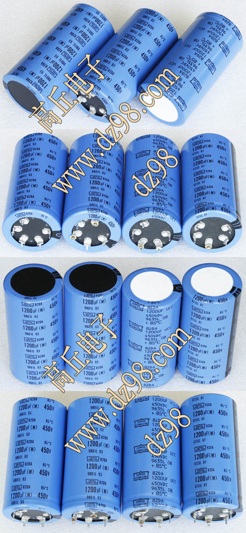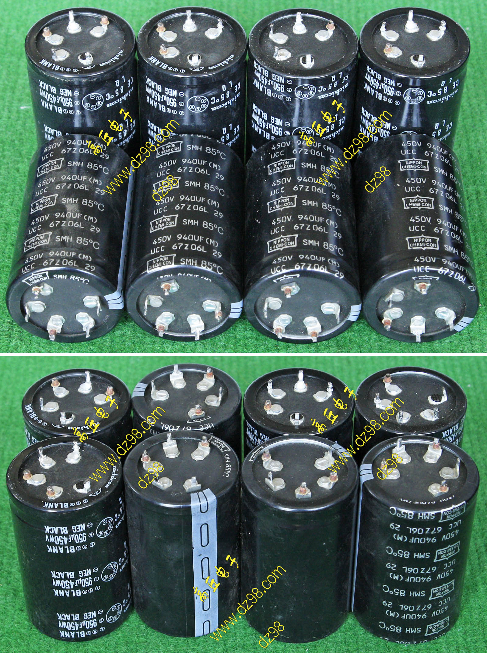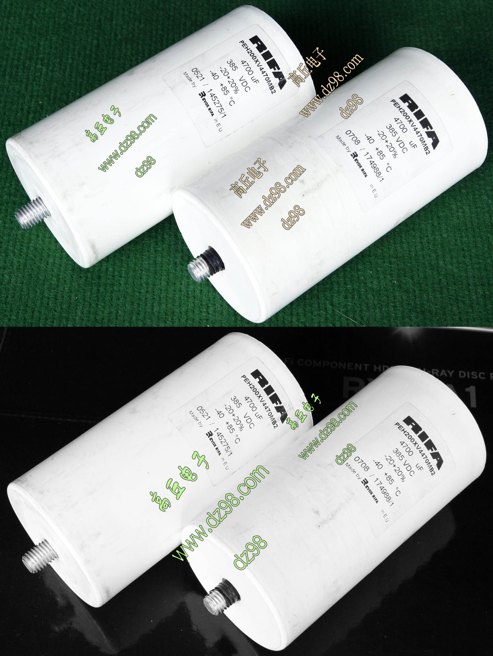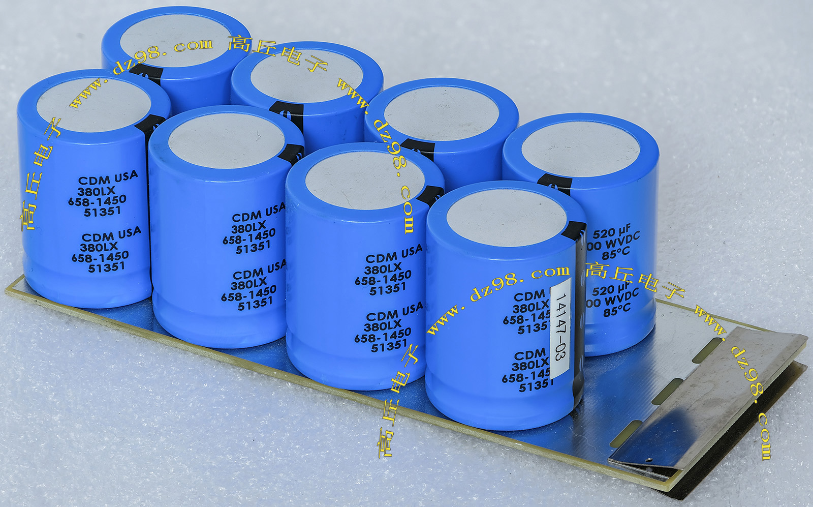 全新电源板切下连4只电容重量约400克,板上装配500V/470uF电容4只,电容直径35.5毫米,高度61毫米。带板发货送板上1只700V/1uF无极电容。