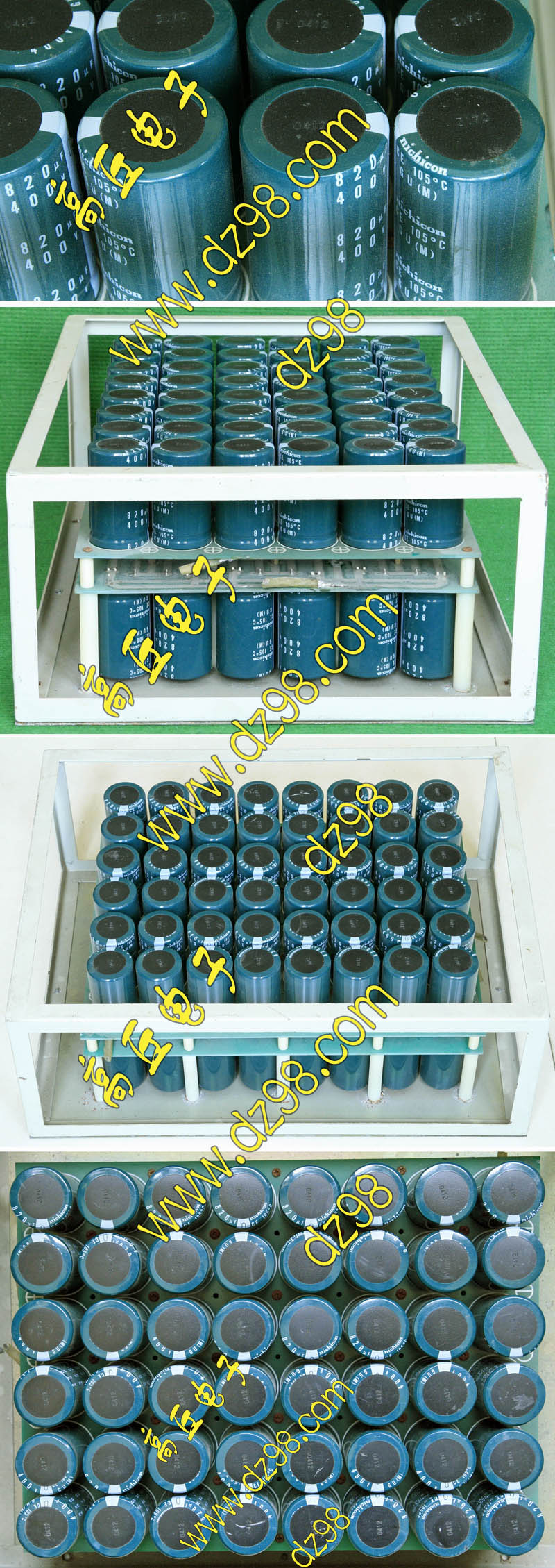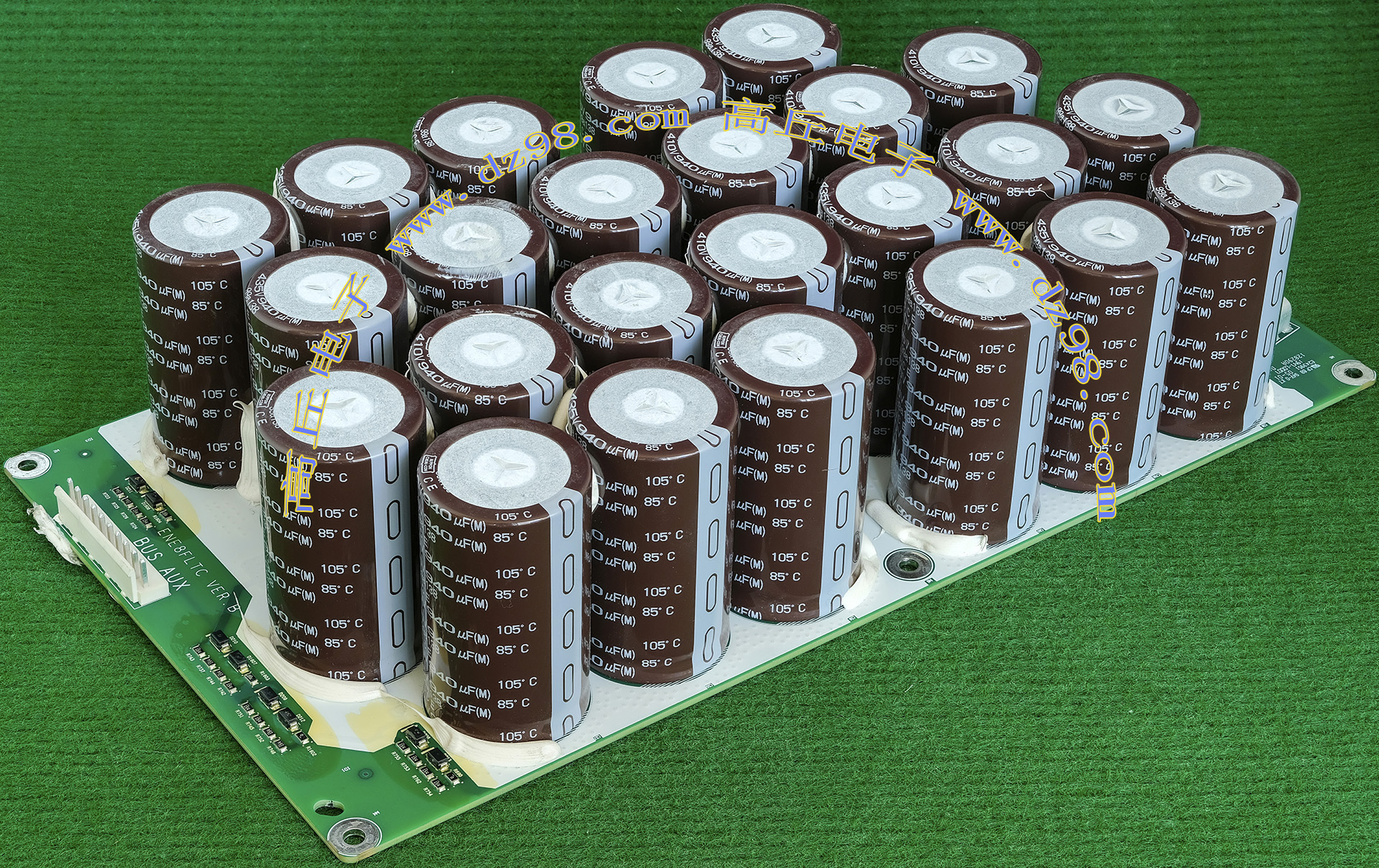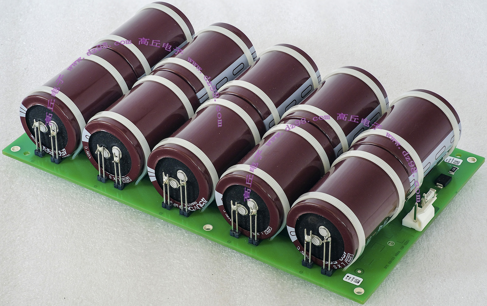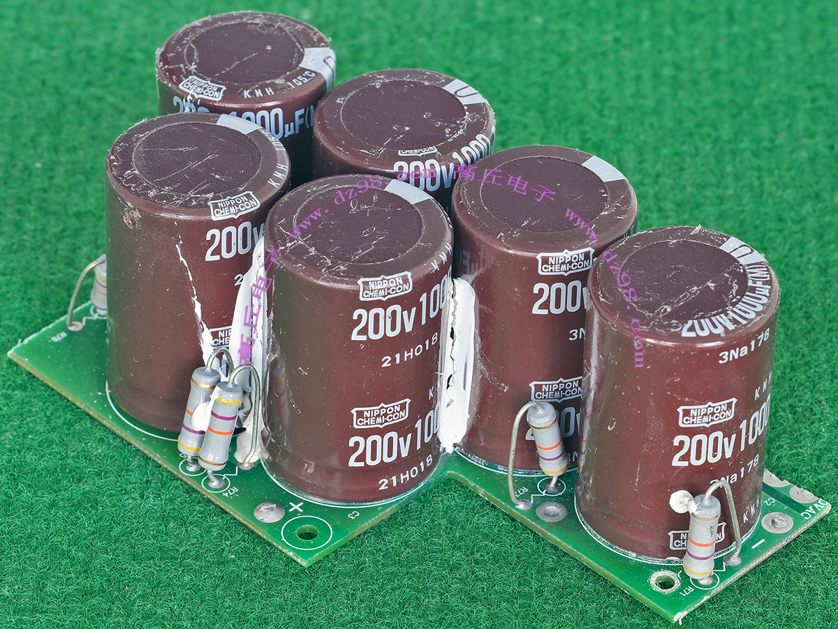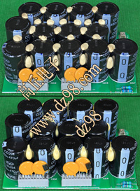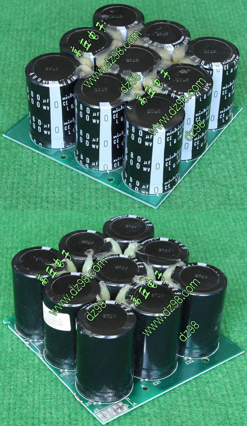 全新装配后没有安装到电源里,每只电容尺寸;直径35.5毫米,高度51.2毫米,每张线路板装配10只,线路板尺寸;205x120x45毫米,重量约845克。