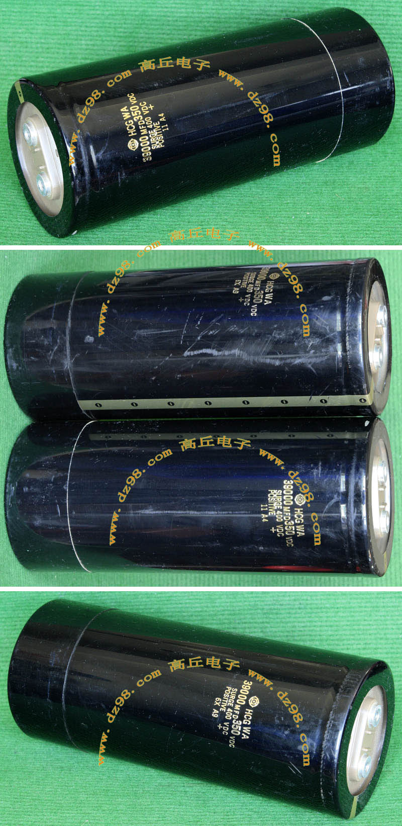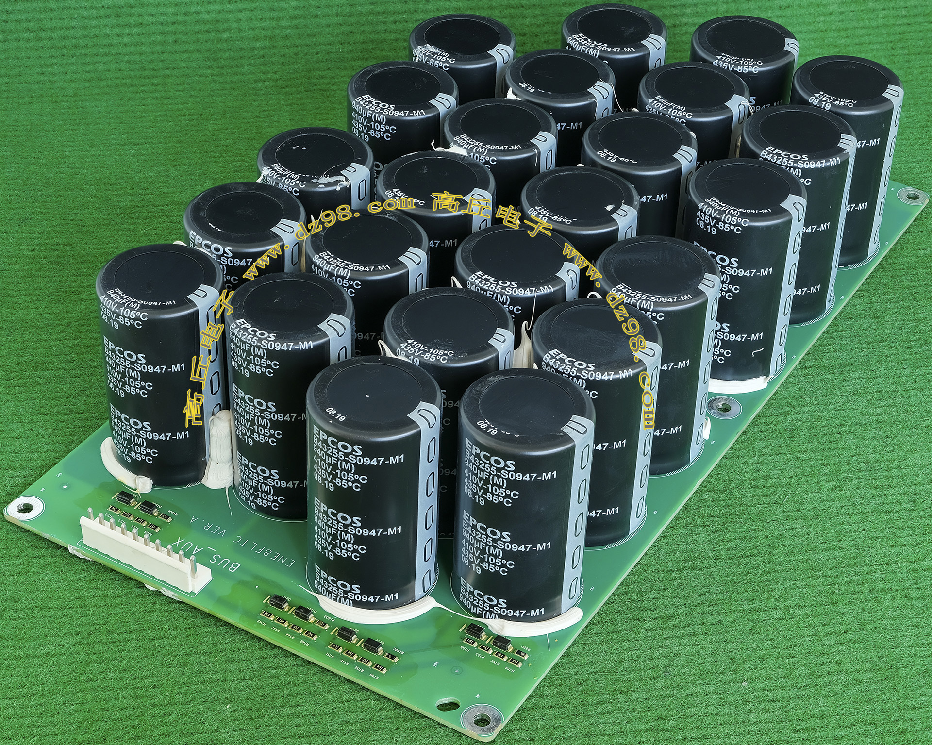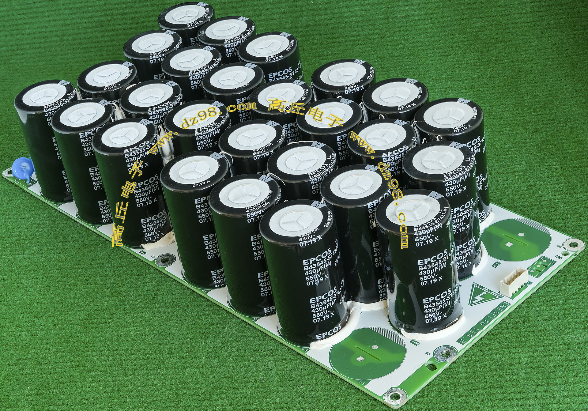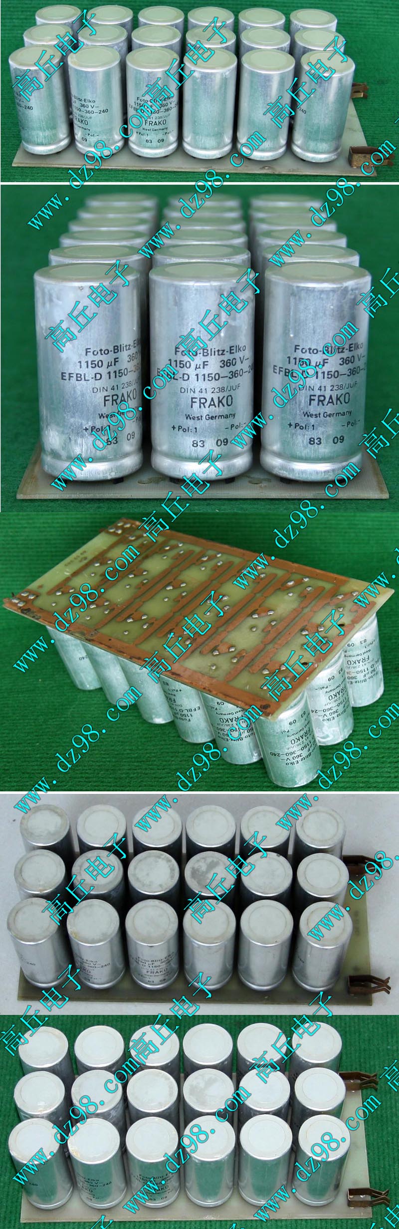 全新装配后没有安装到电源里,每只电容尺寸;直径35.5毫米,高度51.2毫米,每张线路板装配10只,线路板尺寸;205x120x45毫米,重量约845克。