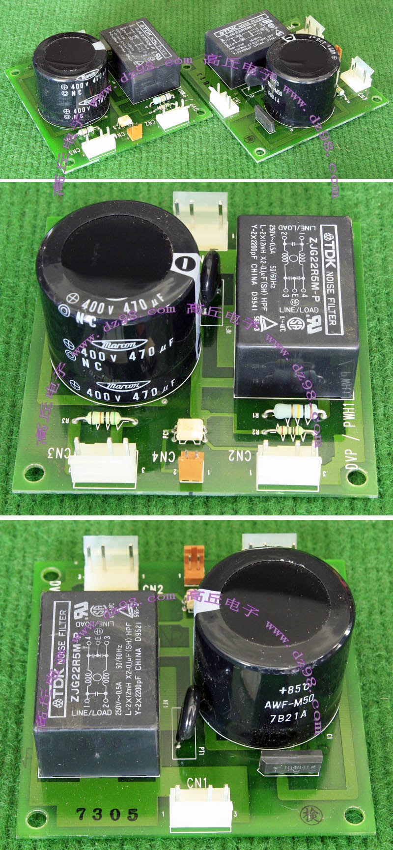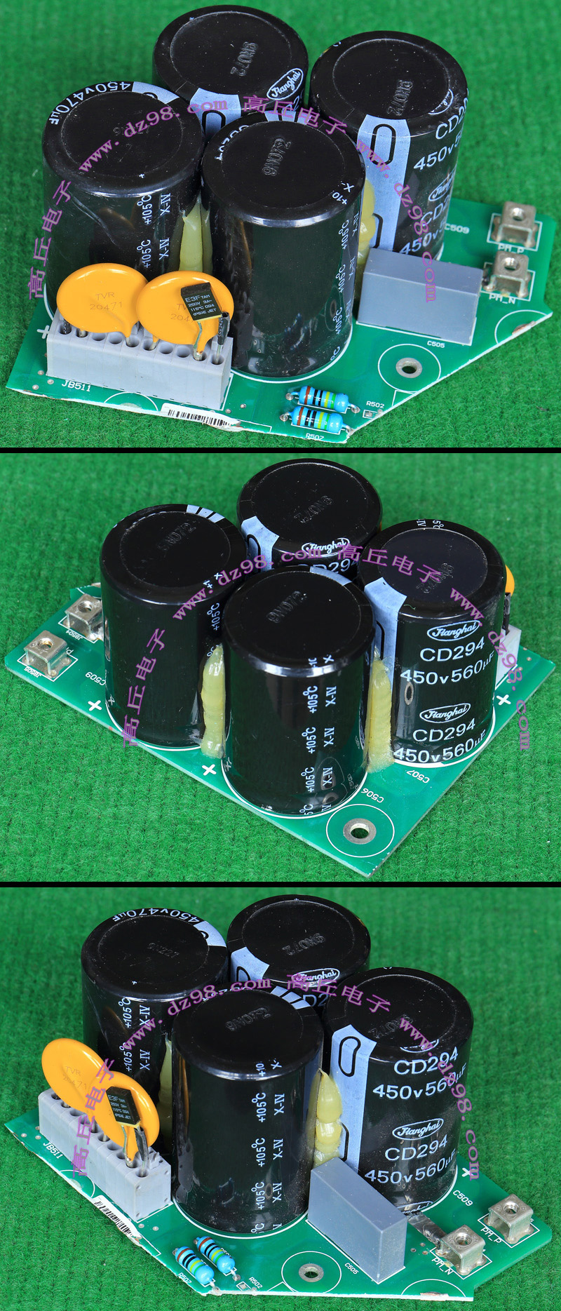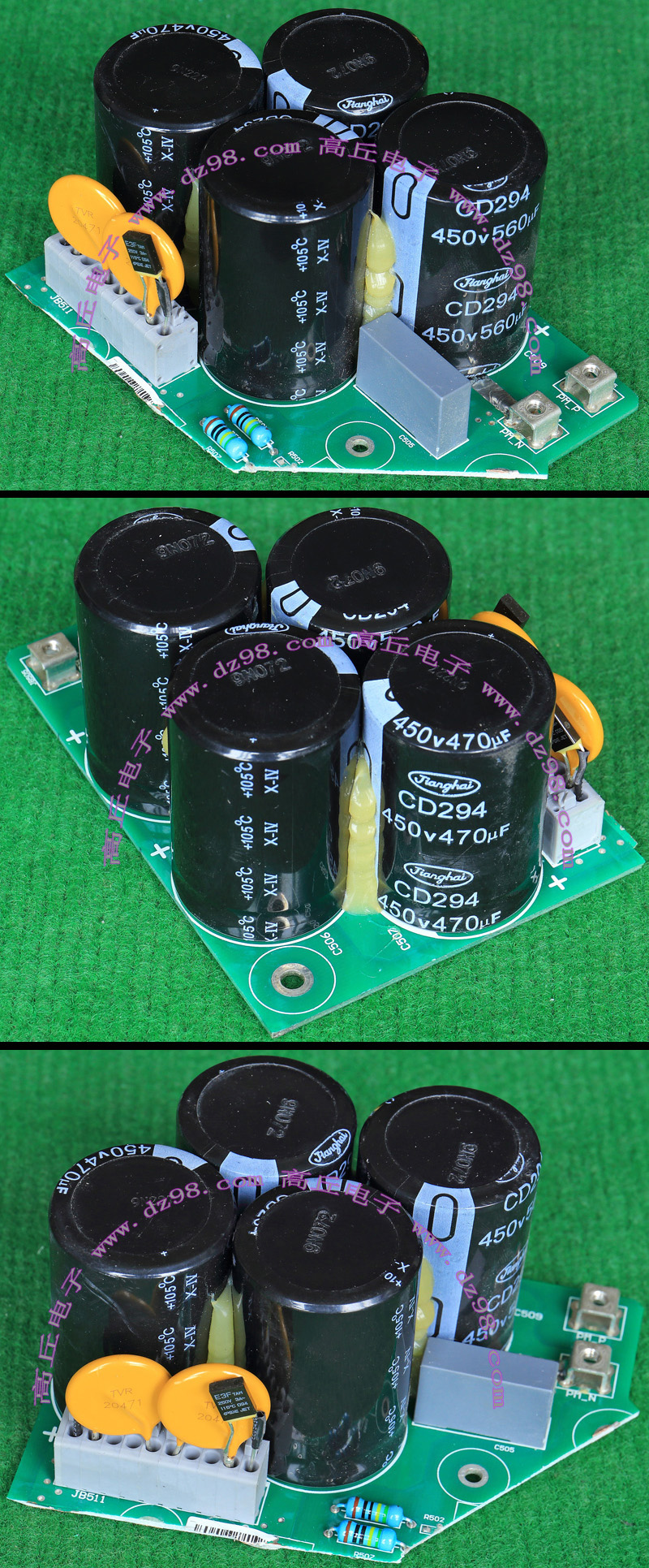 全新电源板切下连4只电容重量约350克,板上装配450V/470uF4只,电容直径35.5毫米,高度50毫米。带板发货送板上2只TVR20471和2只超温度保护器。