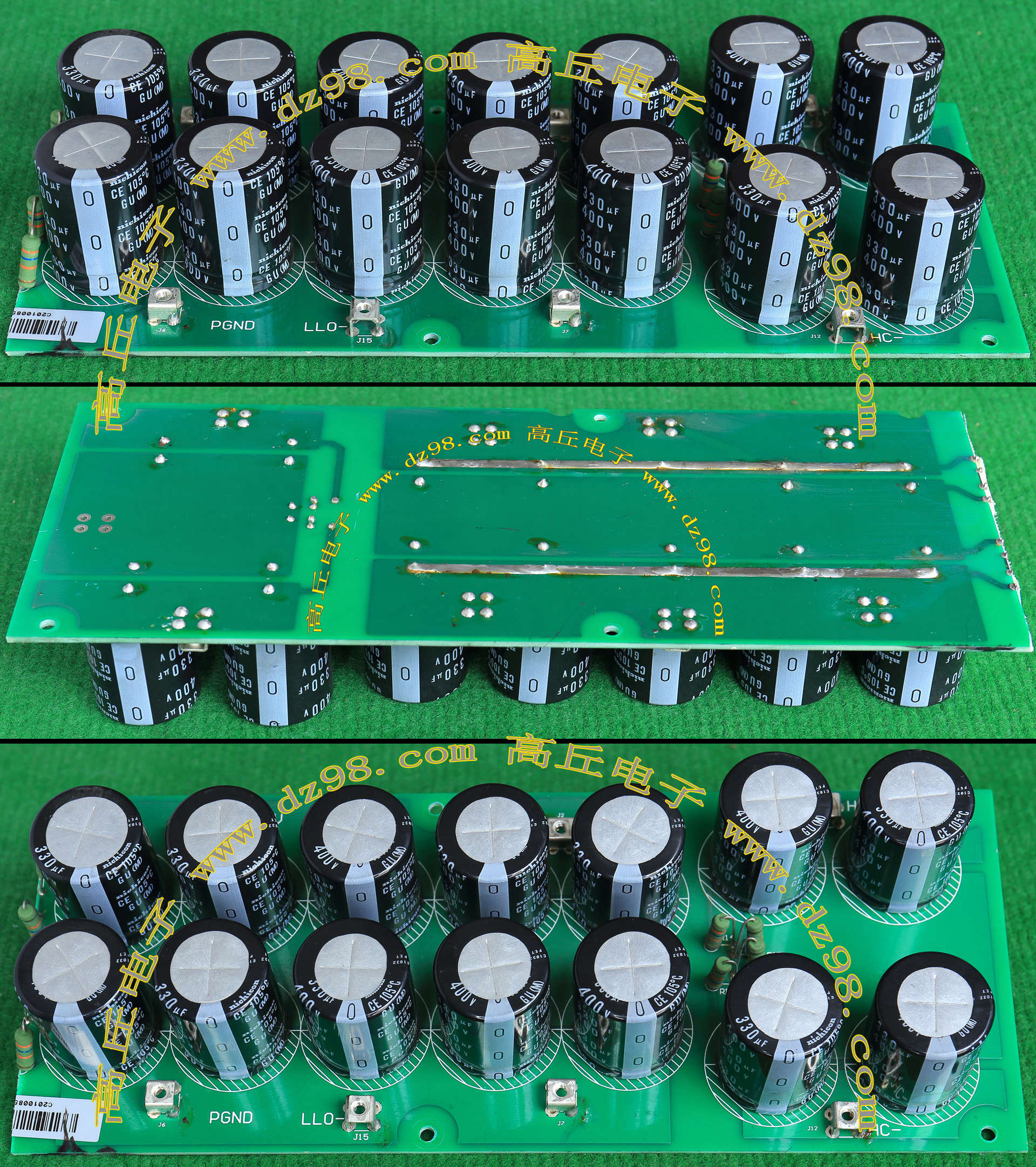 实物请看放大图片,每只电容直径35mm,高41mm。线路板尺寸141mm x 98mm,