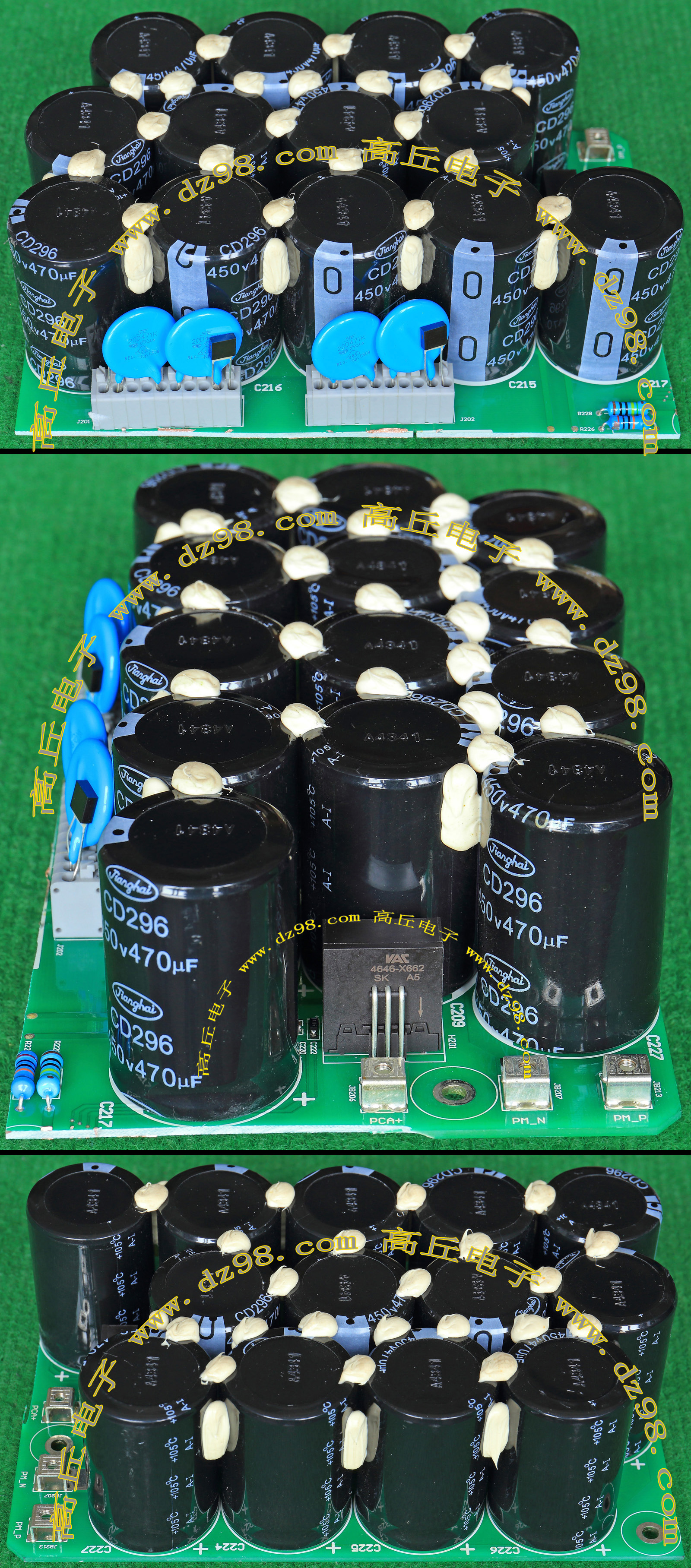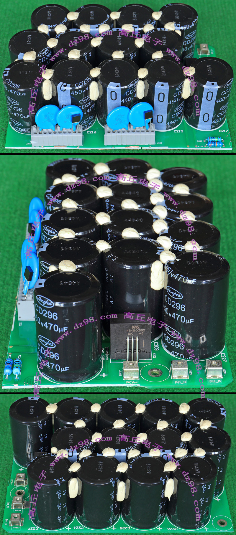整体高度45mm。板上无其它元件,是一块由5只电容并联的滤波器板,兼带4只放电电阻。