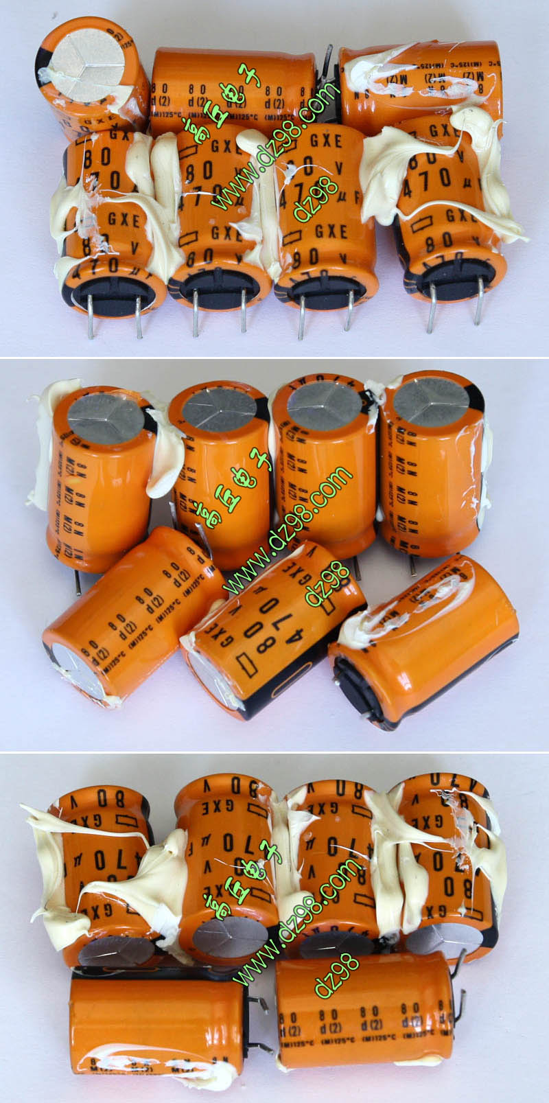 拆机件 | 进口拆机品,电容外观成色9成新,直径12.7毫米,高度35毫米,脚距5毫米,整板重量约180克。 |