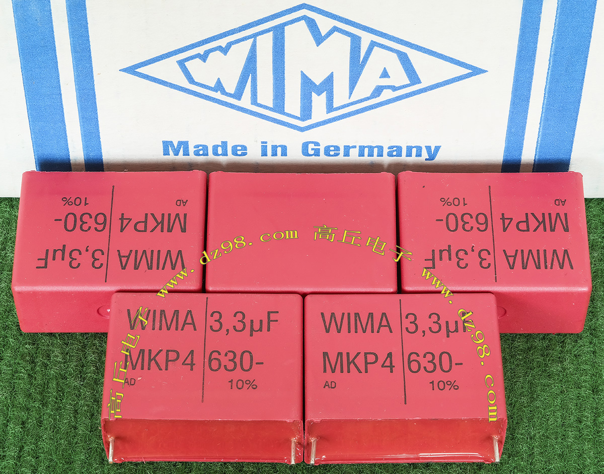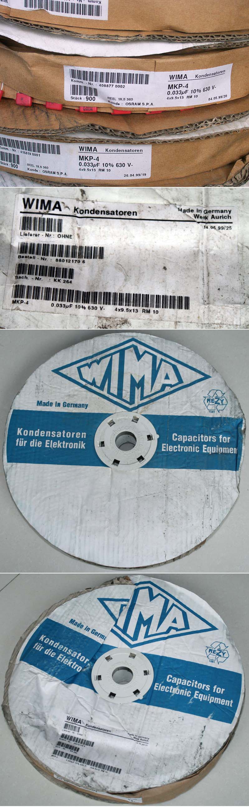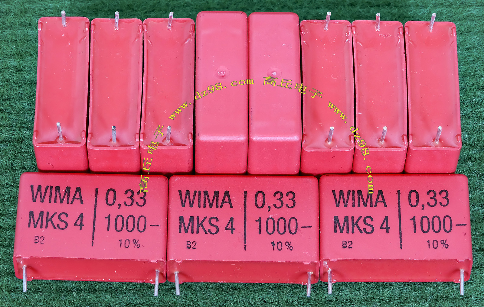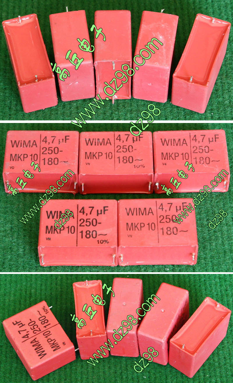全新WIMA电容,电容器引脚间距10mm,流水线封装于纸带上,详见放大图片。 |