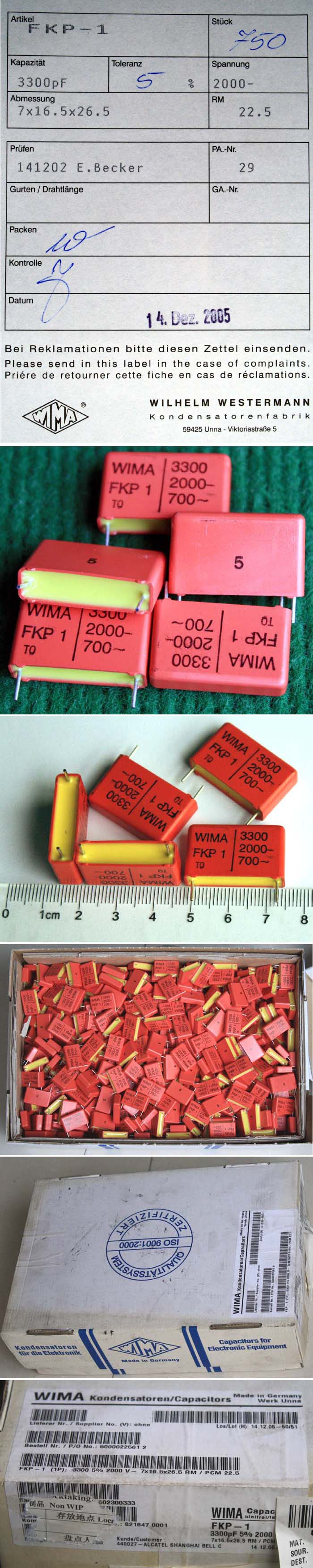 全新原装品,大型电子企业用后余货,容量3300pf,直流电压2000V,交流电压700V,重量每100只约386.5克, |