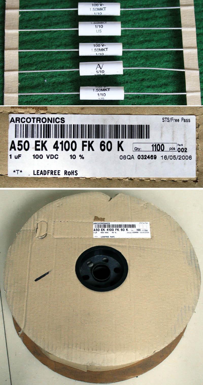 全新 | 全新,每圈包装数量400只。电容体长度32mm, 直径8.8mm,总长度90mm,每盒包装数量800只。 |