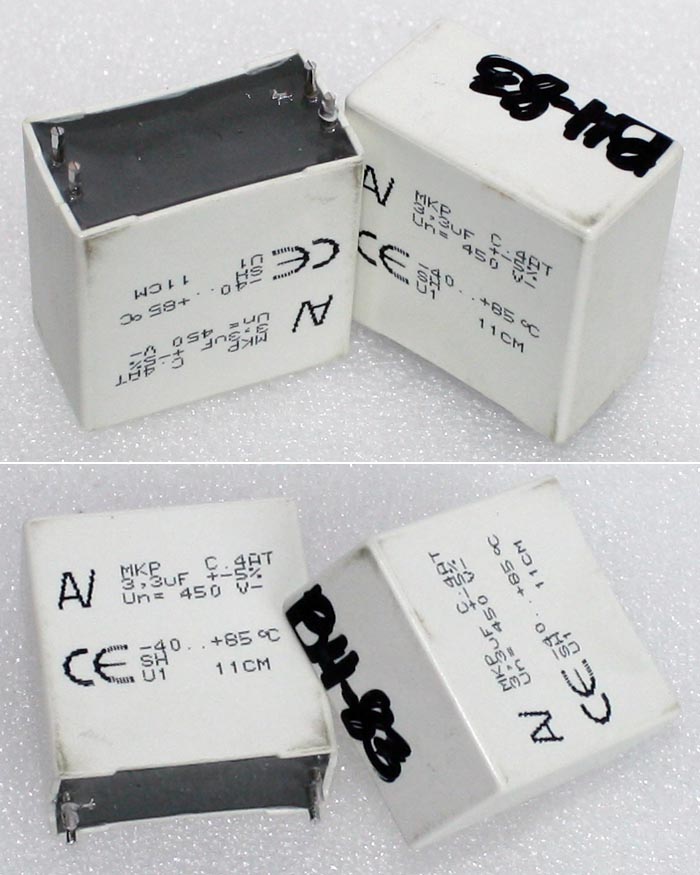 | AV 3.3UF 450V MKP电容BWJ18 | 拆机件 | 外形尺寸:32.4x 18x 32.8毫米,脚距27.5毫米,两脚并联距离5毫米。 | 单价3.5元。 |
