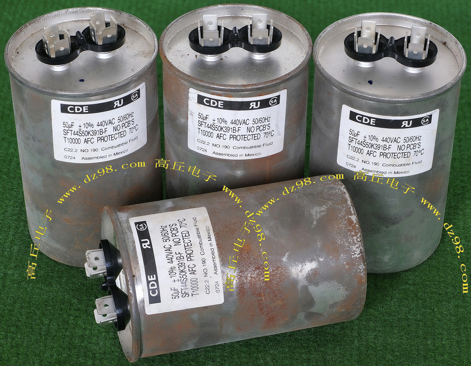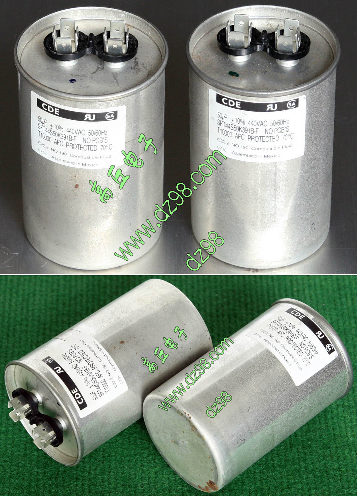 拆机品,从进口全新电源变换器拆下,产地:Mexico,厂牌:CDE, 内部灌注大量电容液,用手摇动起来能听到流动水音,直径65毫米,高度110毫米,重量约335克。 |