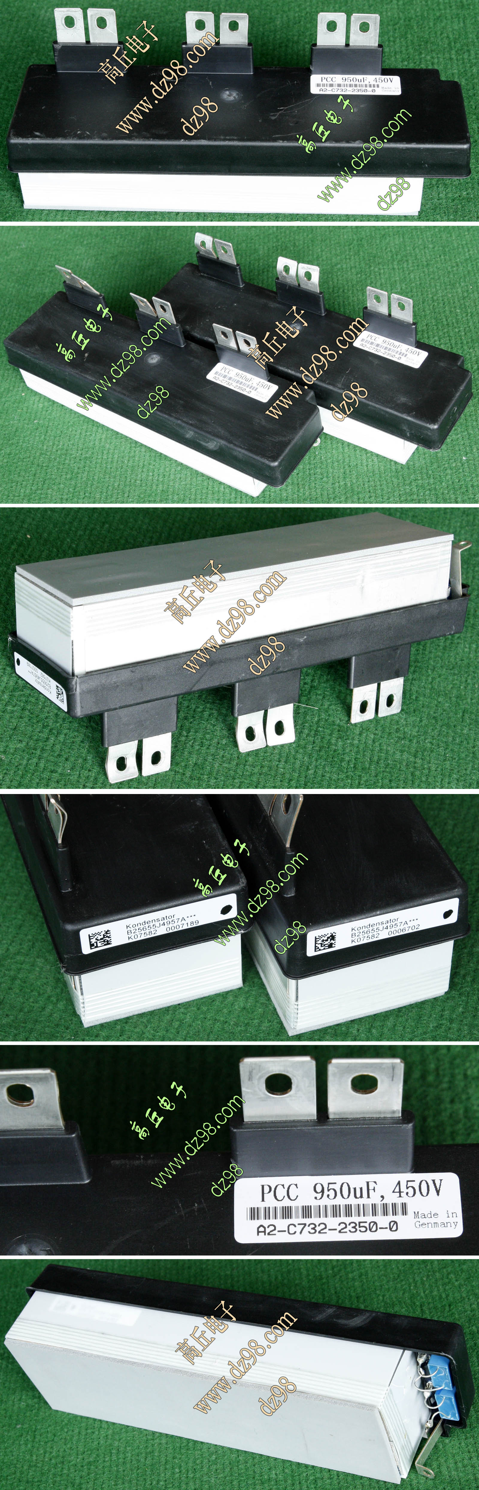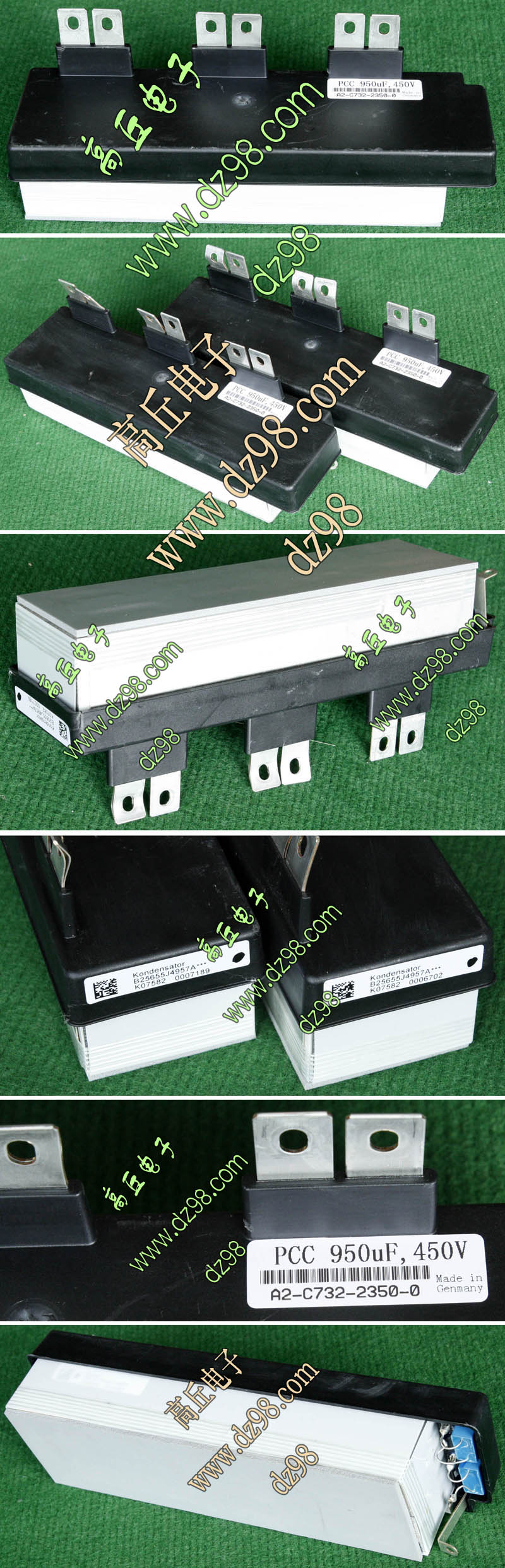 进口拆机品,法国雷诺电动汽车巨功率控制器拆下,外观8成,厂牌FTCAP,FTcap电容主要在德国和瑞士生产,是欧洲工业电容的主要供应商。 外形尺寸:长225毫米、宽63毫米,高50毫米(连接线桩87毫米),重量约770克。接线桩6个其实在内部是每3个并联在一起,实际只接2个线桩即可。 | 单价150元。 |