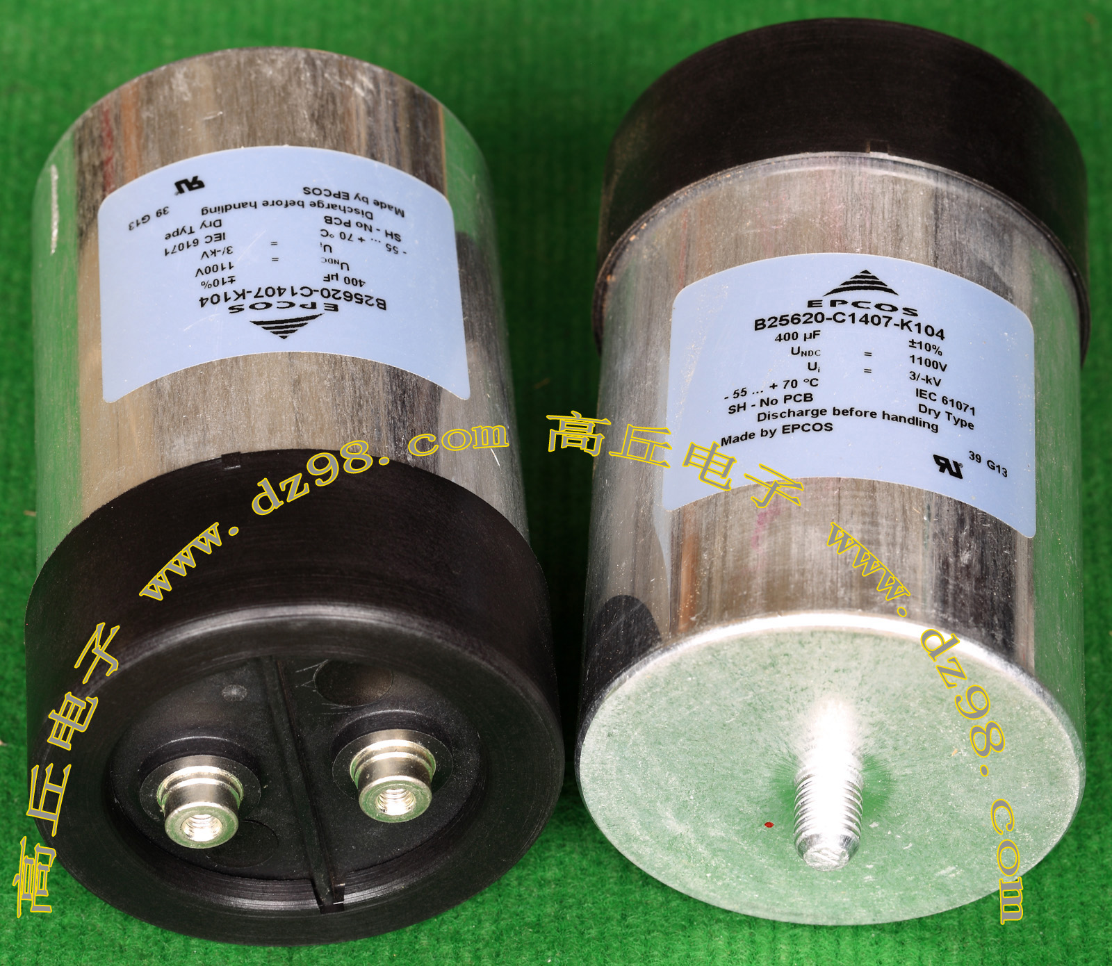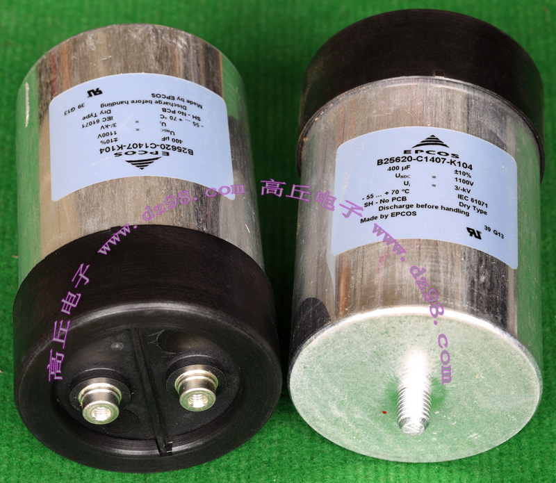 | EPCOS西门子B25620-C1407-K104 400uF 1100V大容量高电压无极性电容BWN15 | 全新原装,直径86毫米(塑料圈89毫米),高度142毫米(连底部螺丝158毫米),重量约820克。 | 单价180元。 |