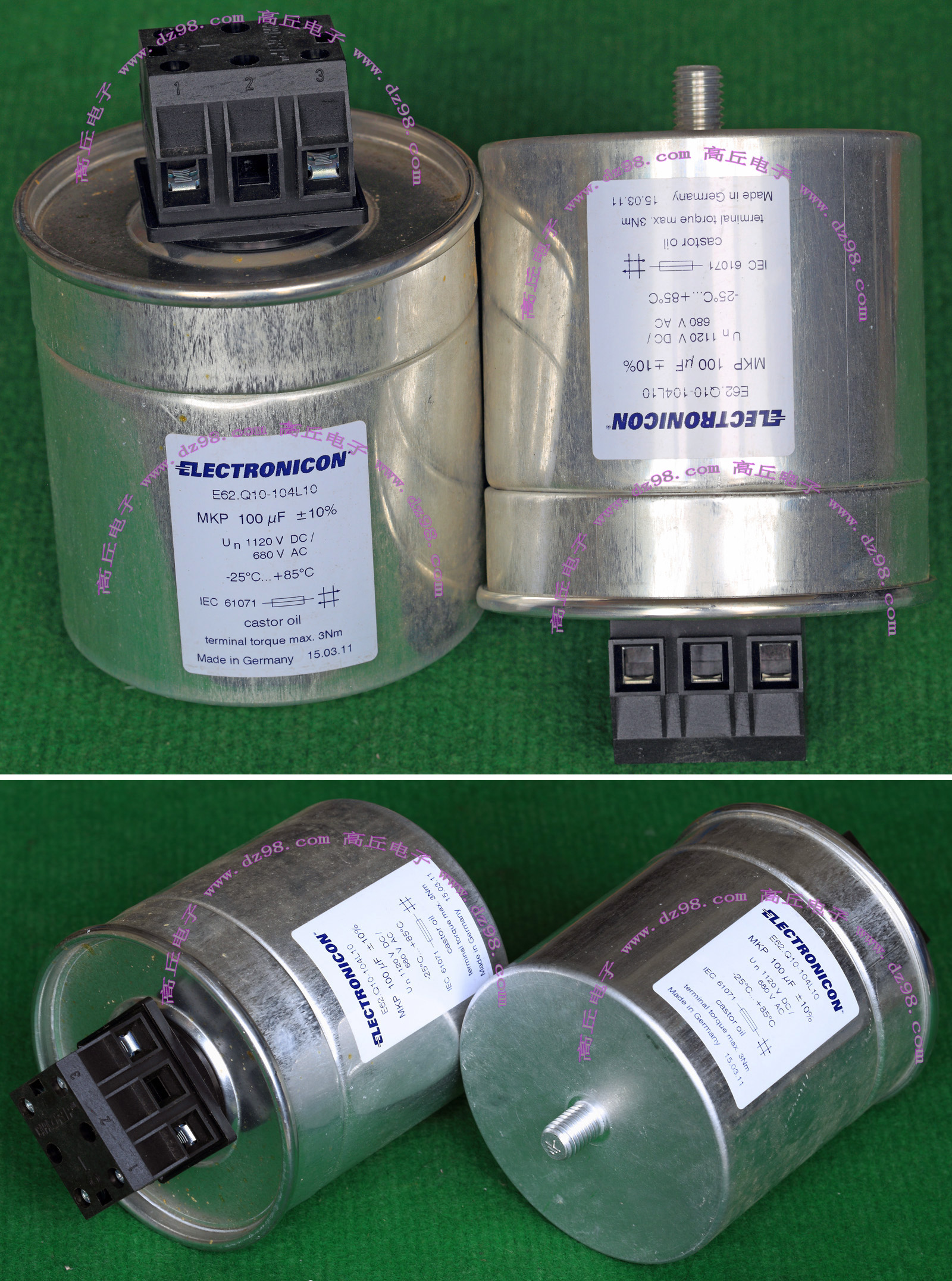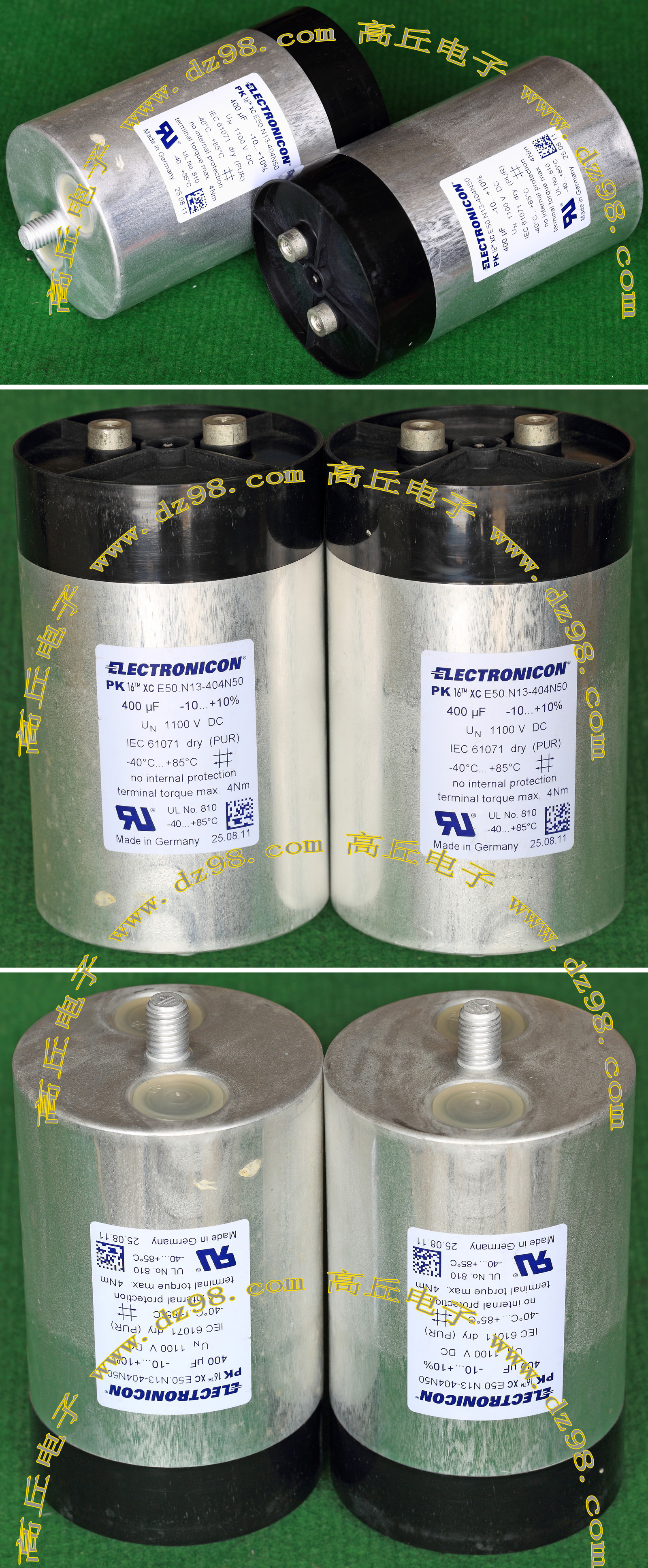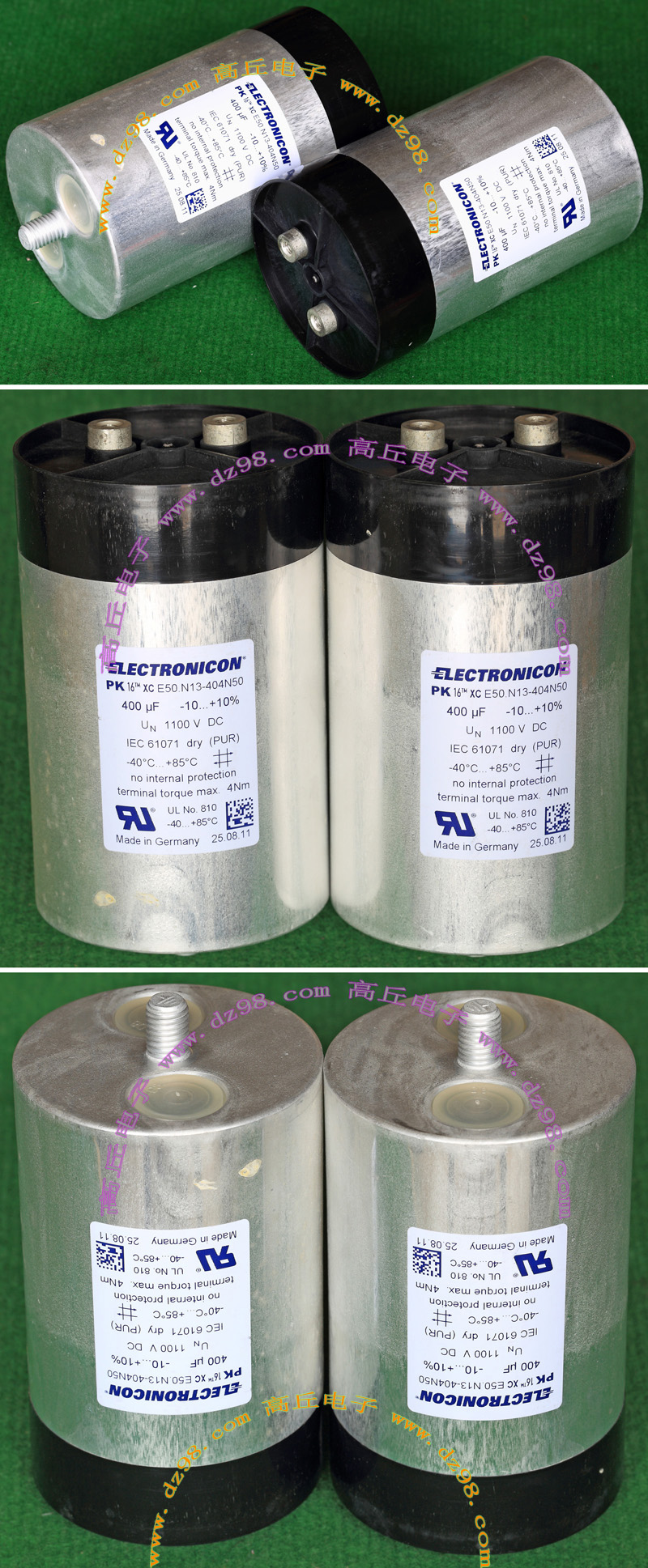 | ELECTRONICON 400UF 1100VDC 德国产大容量高电压无极性电容BWN17 | 全新原装,直径86毫米,高度142毫米(连底部螺丝159毫米),重量约810克。 | 单价180元。 |