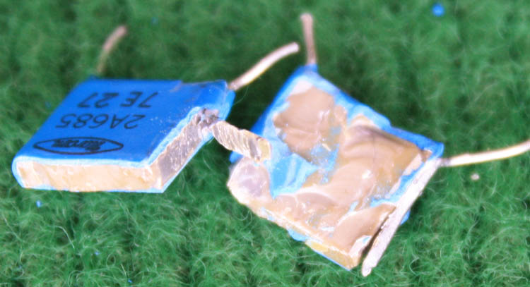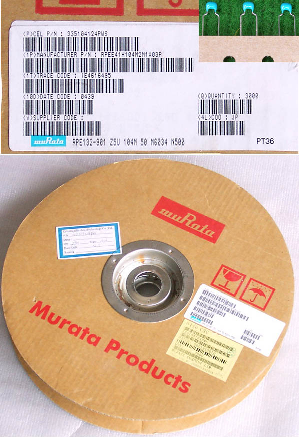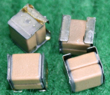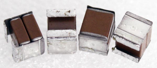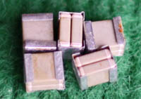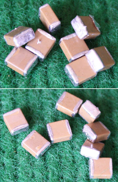 | 进口拆机105K 1UF 50V金属固体 高频多层陶瓷电容BWo35 | 拆机件 | 每板4只从电源板上切下,连板发货,每板重量约7克,脚距5毫米。 | 每4只=1元。 |