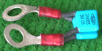 拆机件,由2只100V-6.8UF并联,从高频开关电源拆下,原来用在开关电源直流输出接线端子上。