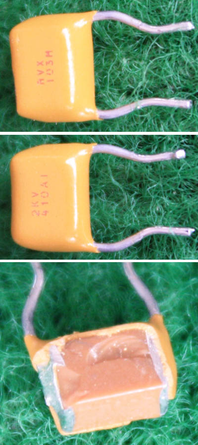 拆机件 | 脚距5-7.5mm,高频率,低损耗,拆机件,从新一代电源模块板上拆下,电压2000V,容量10000PF。 |