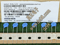 全新电容,容量180PF,电压1000VDC,每盒包装1500只(连盒重量约760克),直径7.5毫米,厚度2.7毫米,脚距5毫米。 |