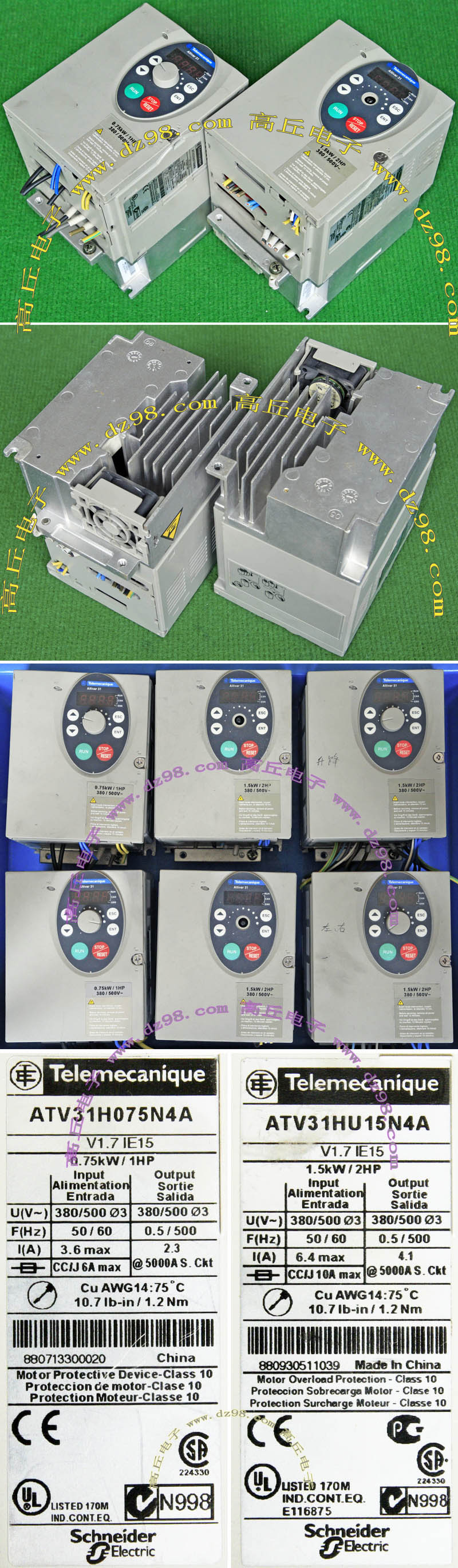 无货 Telemecanique ATV31H075N4A ATV31HU15N4A变频器CA33, 原装拆机件,东西请看放大图片,重约1400克。 |