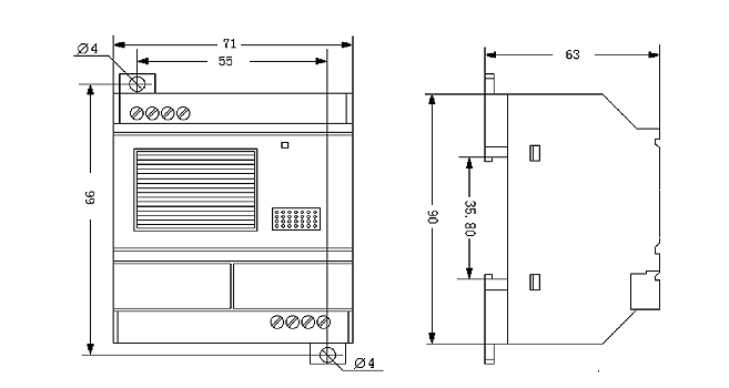 安装尺寸(mm):35mm标准的DIN导轨或螺钉固定安装 |