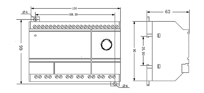 安装尺寸(mm):35mm标准的DIN导轨或螺钉固定安装 |