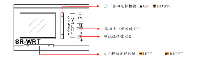 | 6.“LEFT、RIGHT”用于在主界面下查看各SR主机的子功能块的输入、输出情况及编程、参数修改情况下的光标位置的选择. |