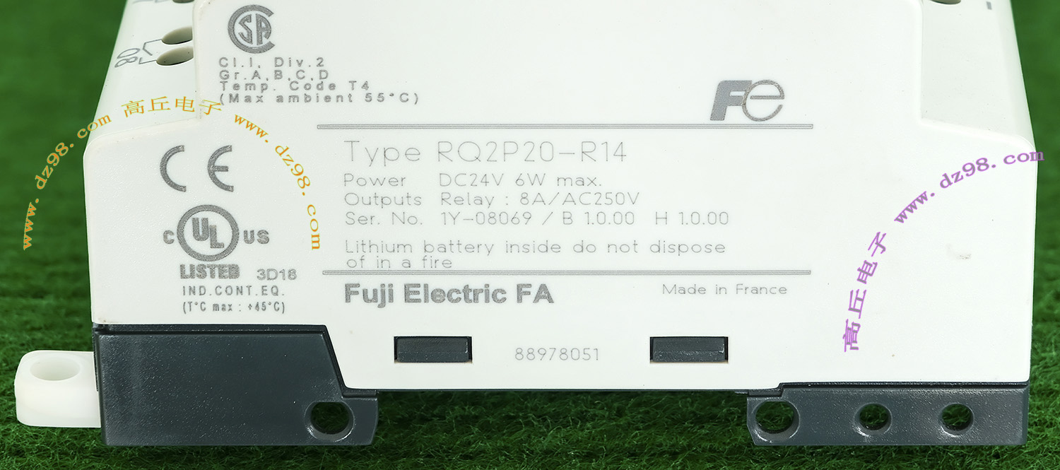 | Fuji RQ2P20-R14 富士 PLC 可编程控制器CB93 | 进口拆机,实物参照图片,厂牌;Fuji Electric FA 日本-富士,产地;Made in France,外形尺寸;125x90x58毫米,重量约311克。 |