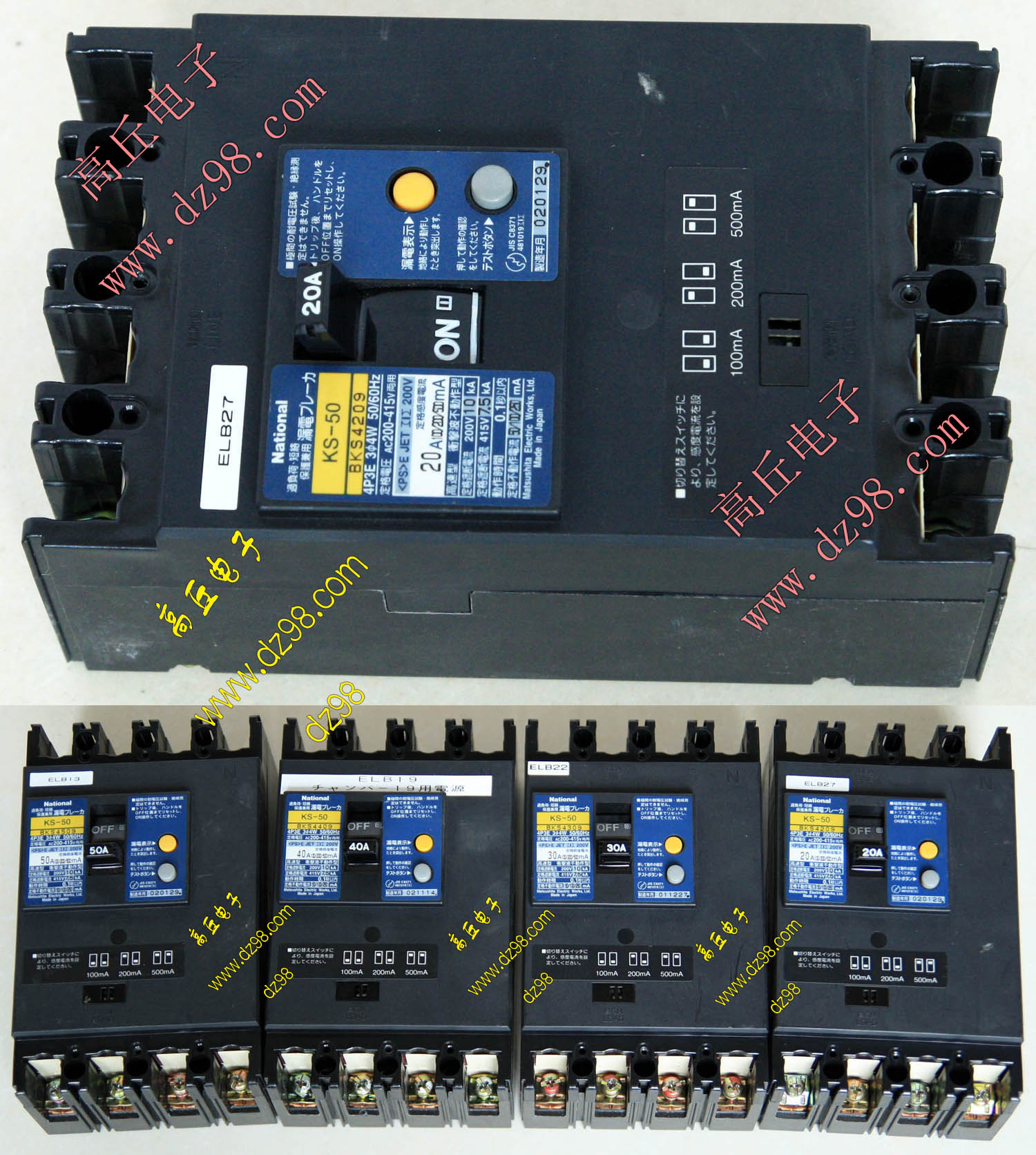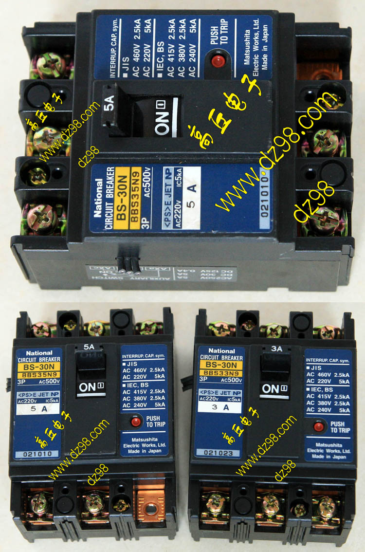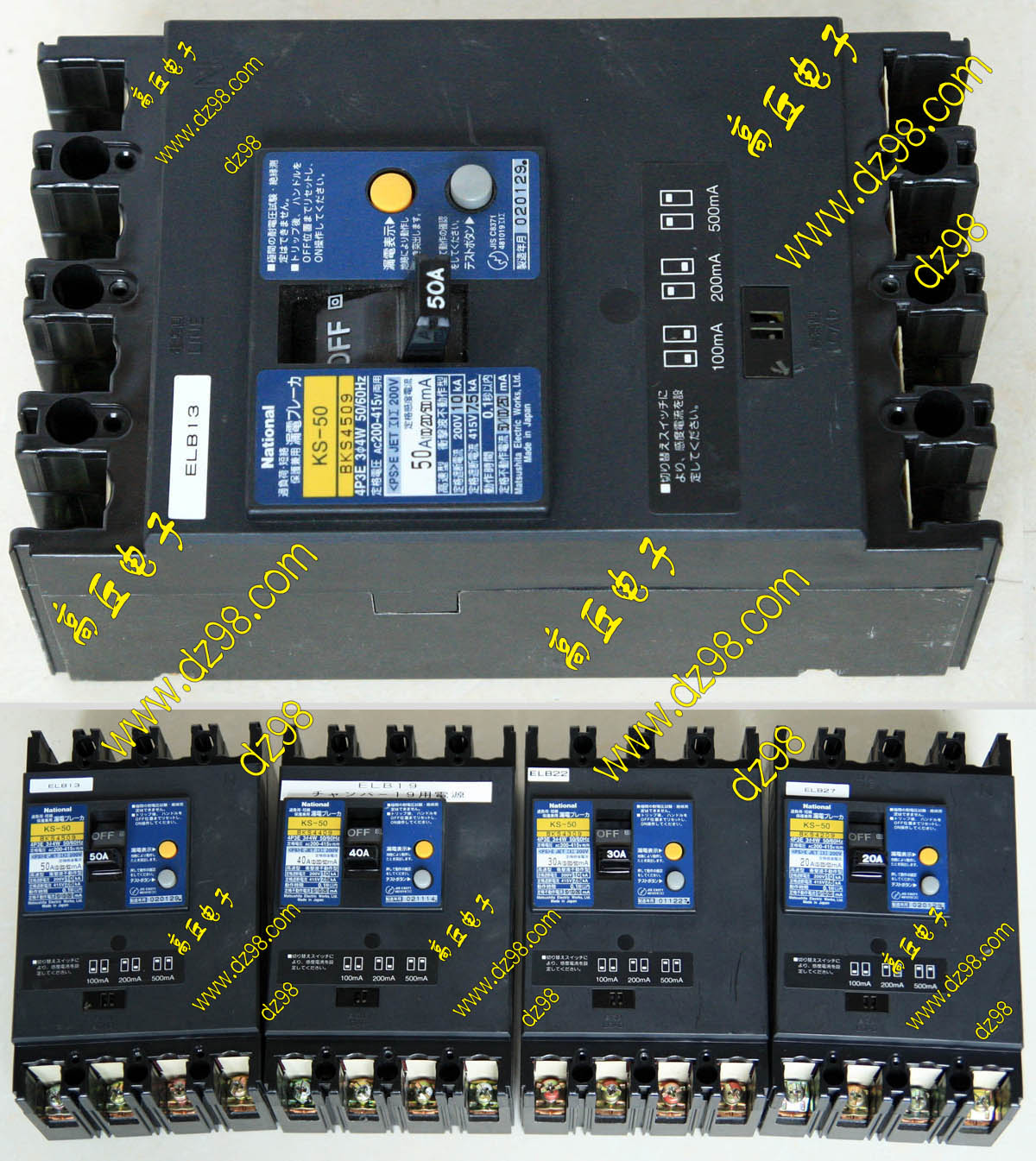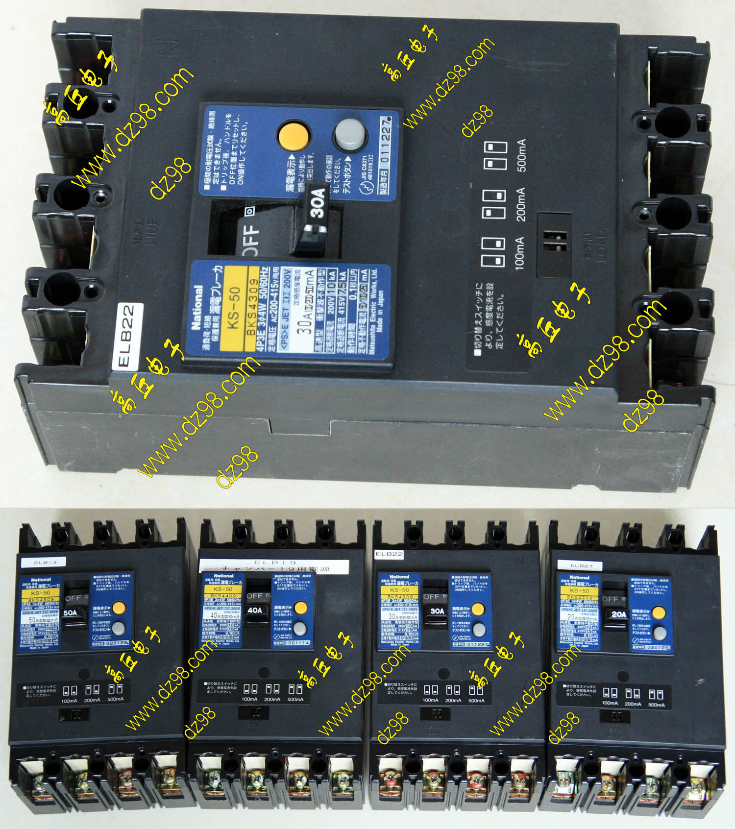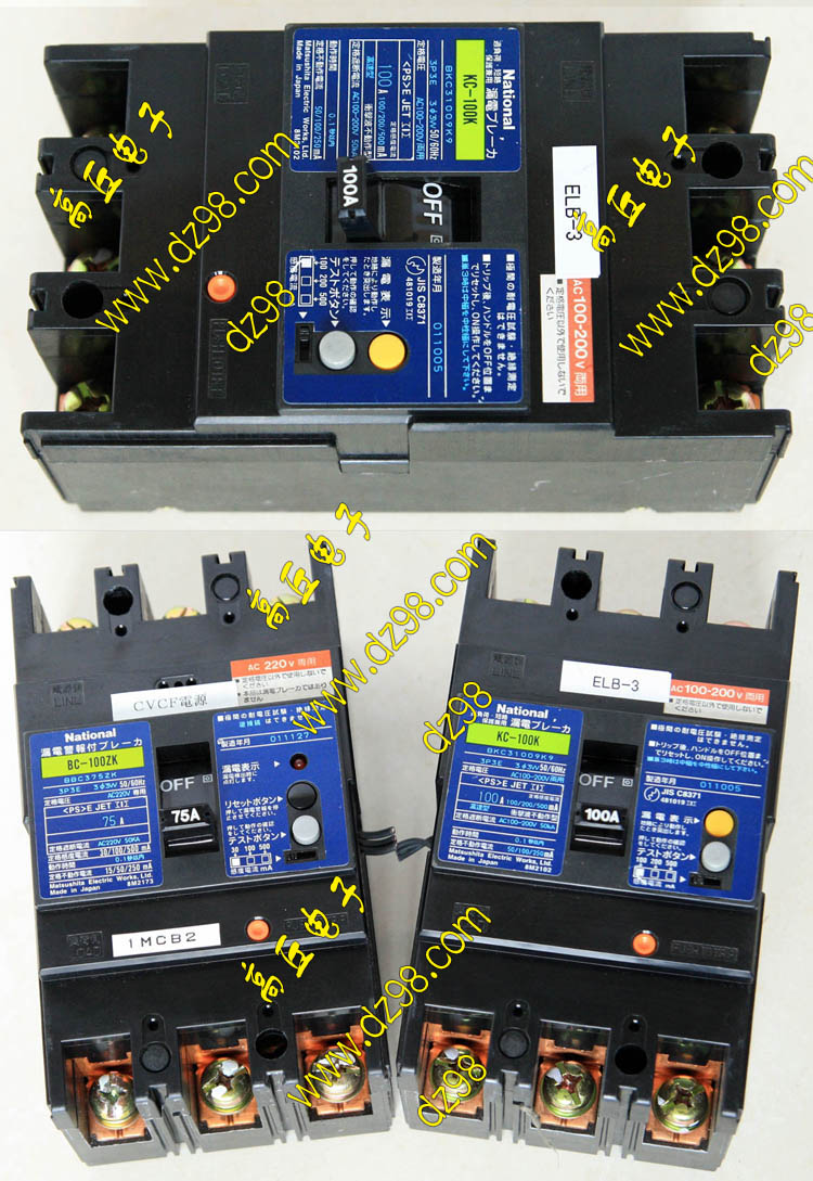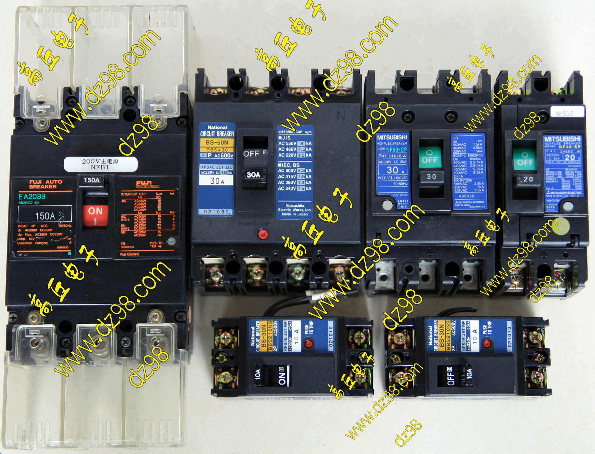 ,外观约8成新,产地日本,实物看图,导轨卡装或平面安装,10A空气开关重量约200克,三相漏电开关重量约220克,单相漏电开关重量约150克,漏电动作电流30毫安。