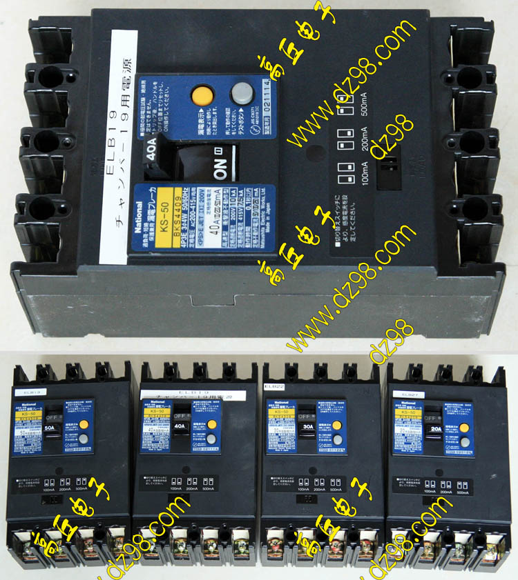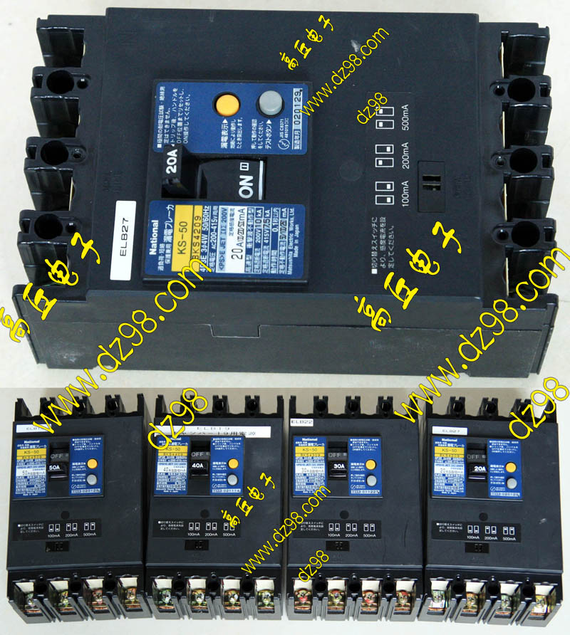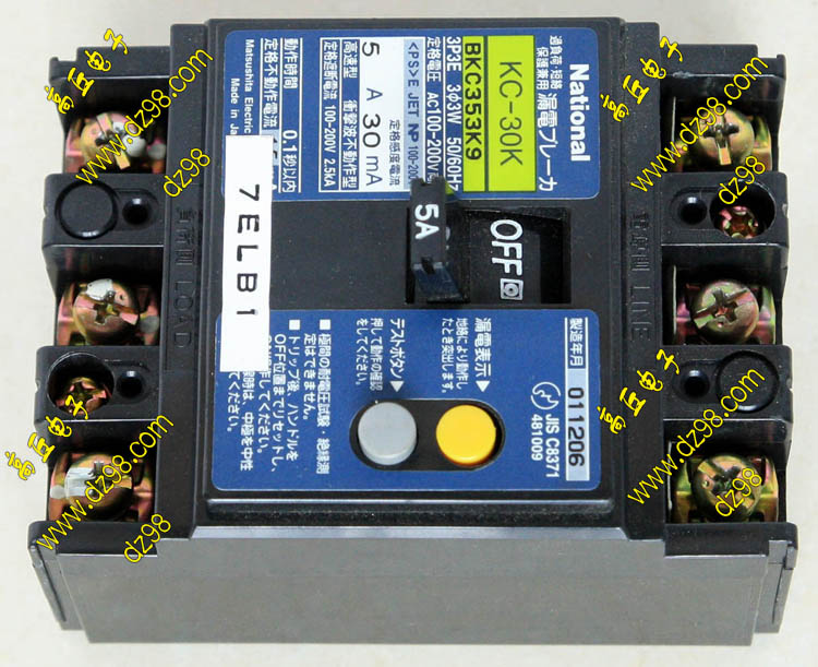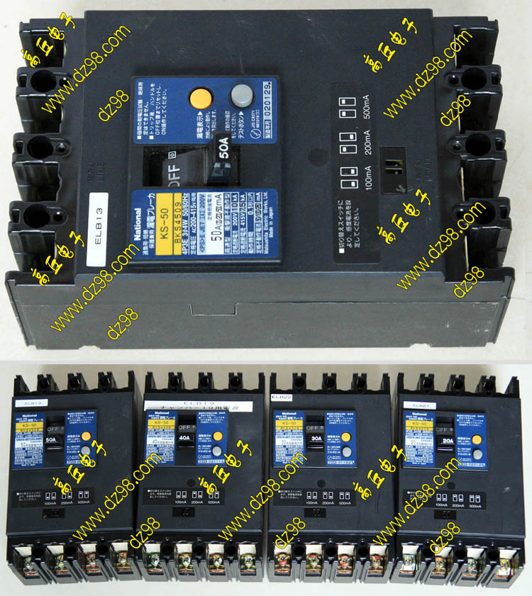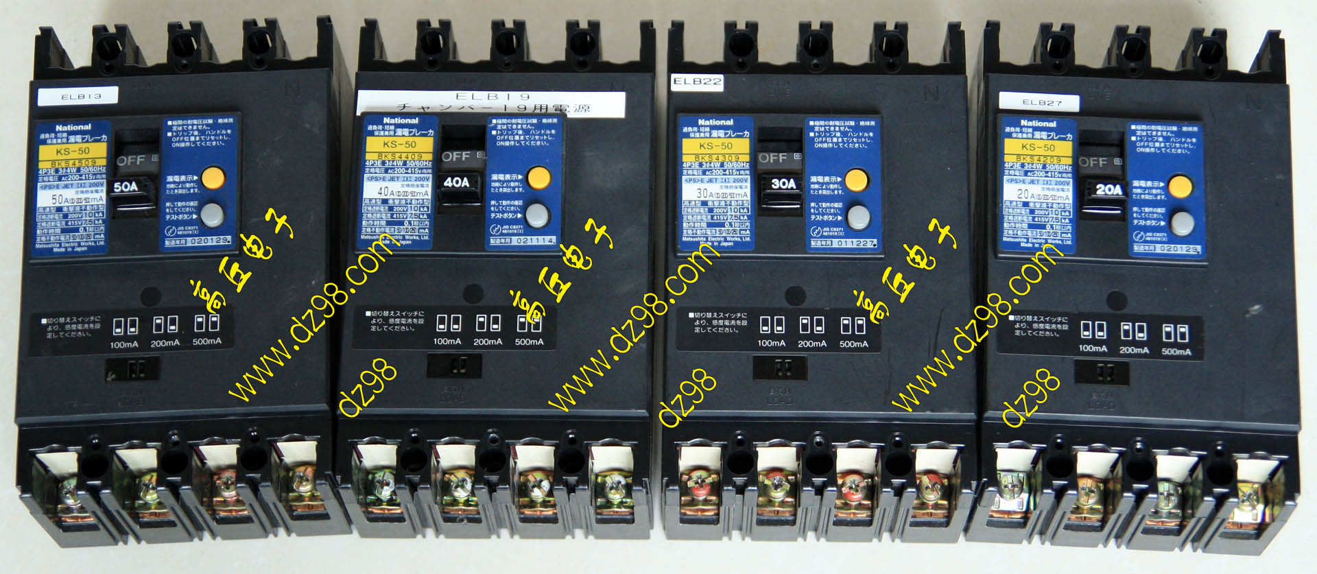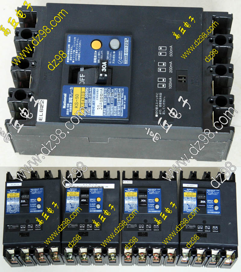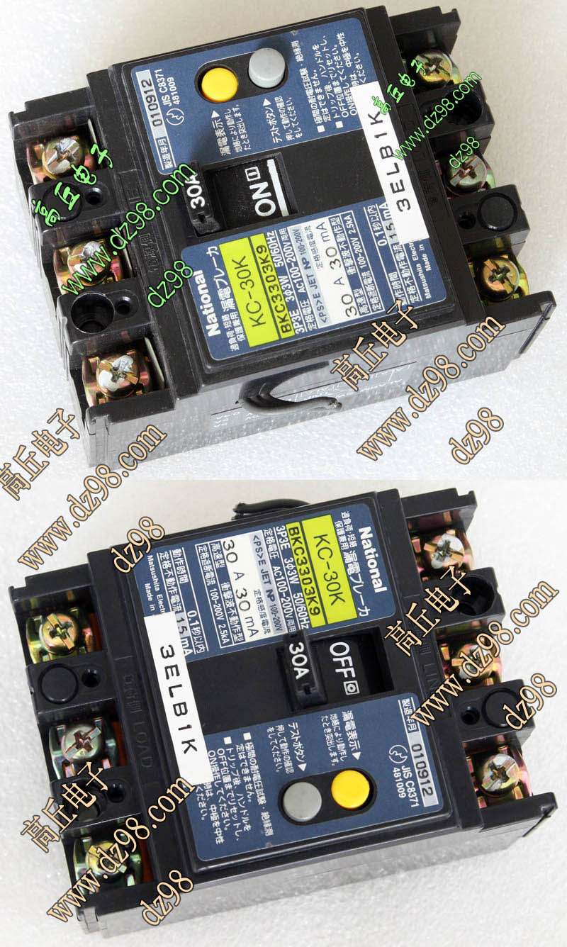 ,外观约8成新,产地日本,实物看图,导轨卡装或平面安装,10A空气开关重量约200克,三相漏电开关重量约220克,单相漏电开关重量约150克,漏电动作电流30毫安。