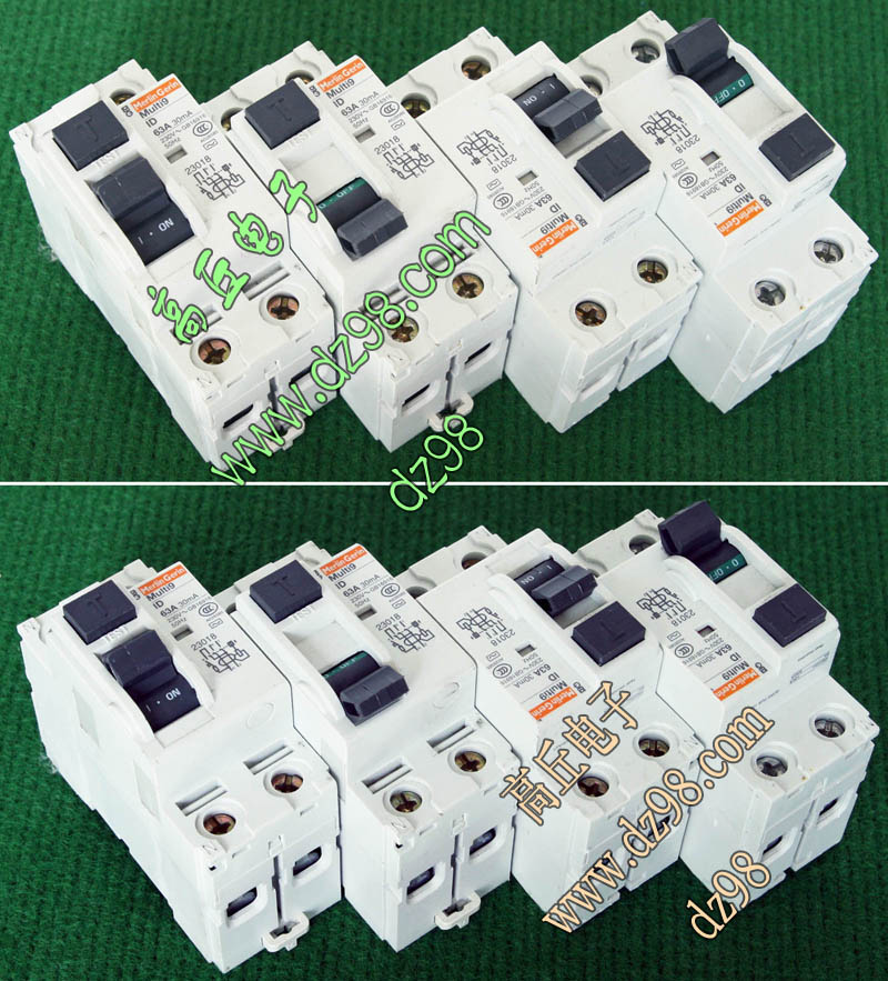拆机件,外观约8.5成新,导轨安装,工作电压AC240V,电流63A,漏电感度0.1A。