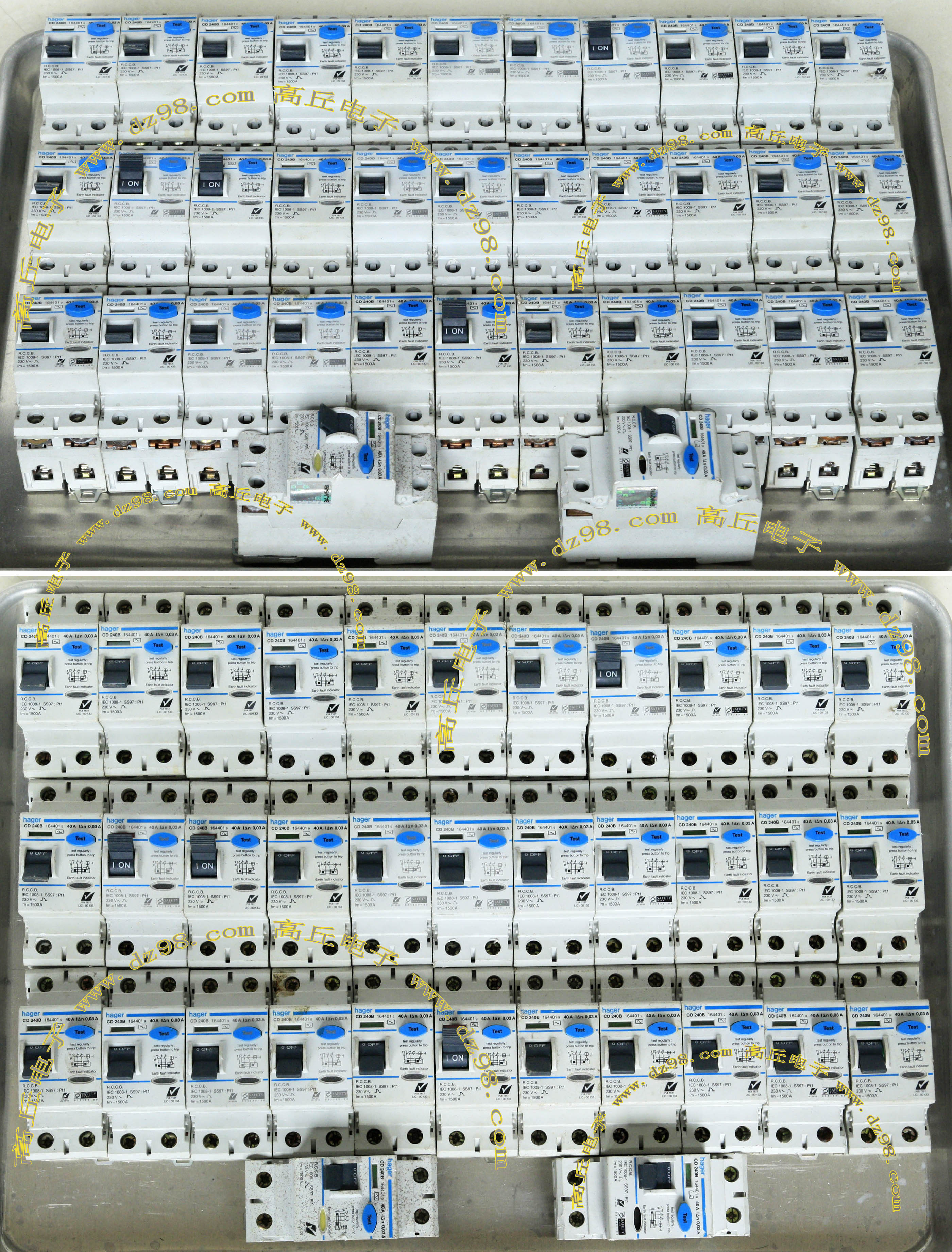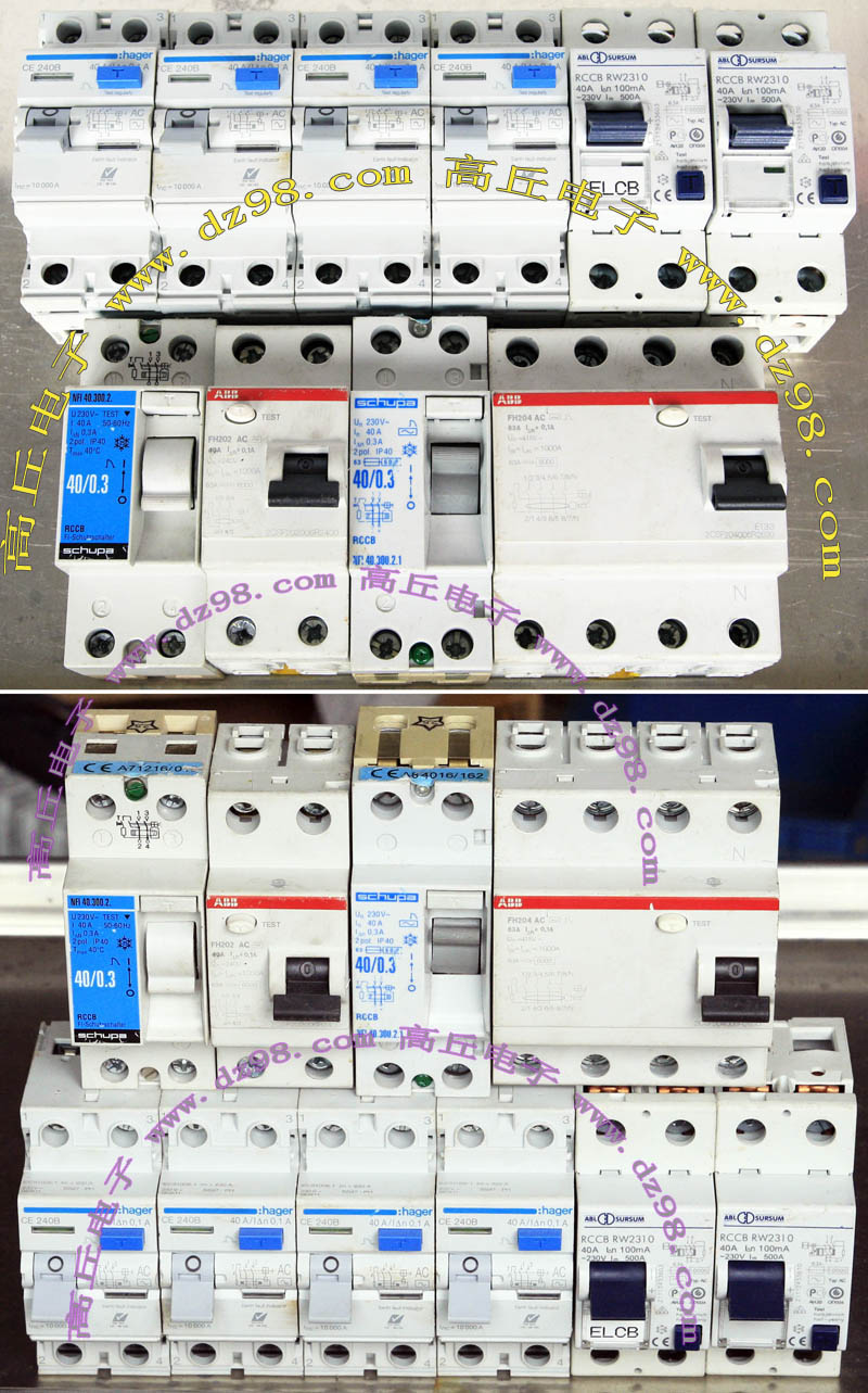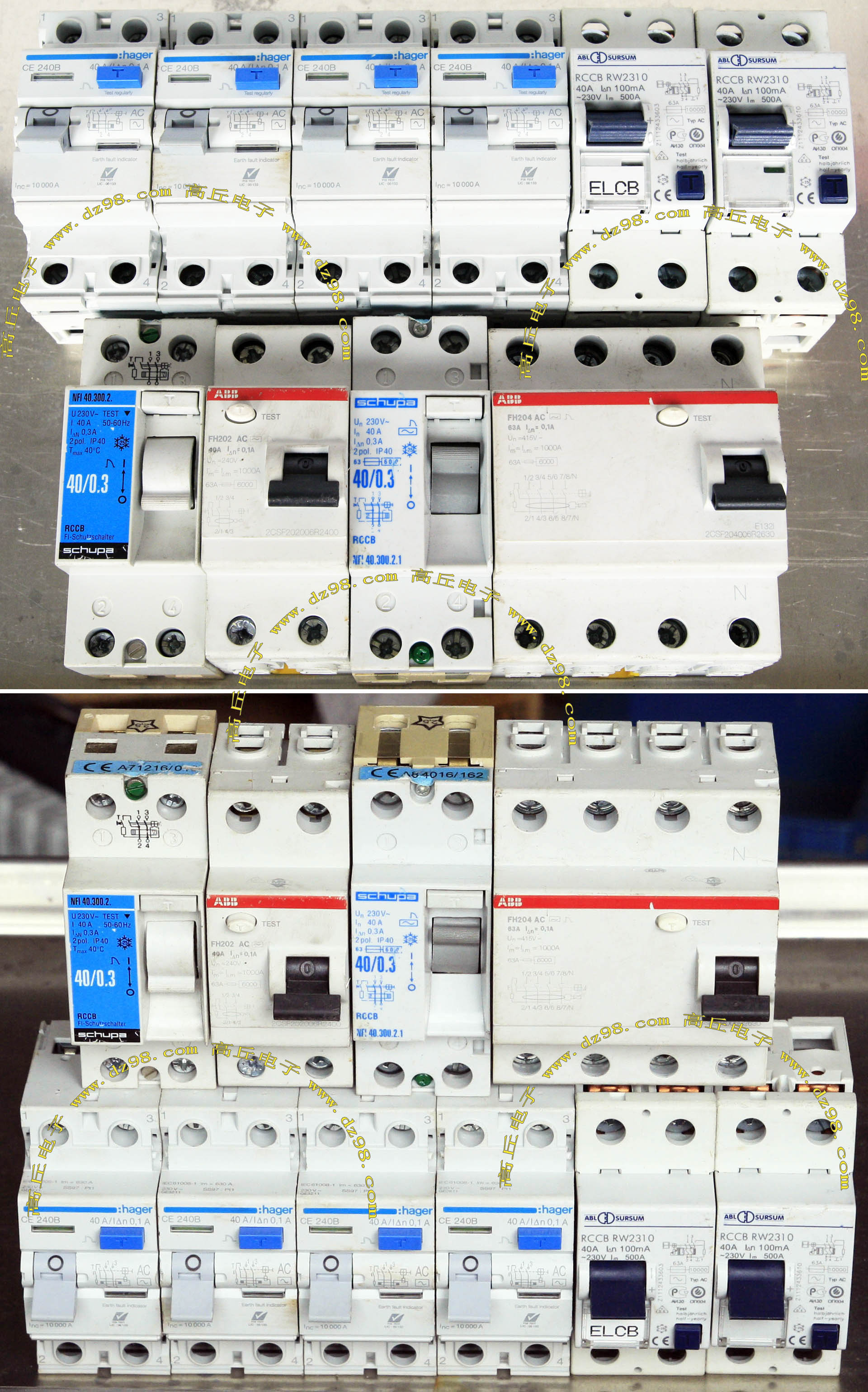 拆机件,外观看图。 Hager CE240B 240V 40A,漏电动作电流0.1A,产地;法国,无货。