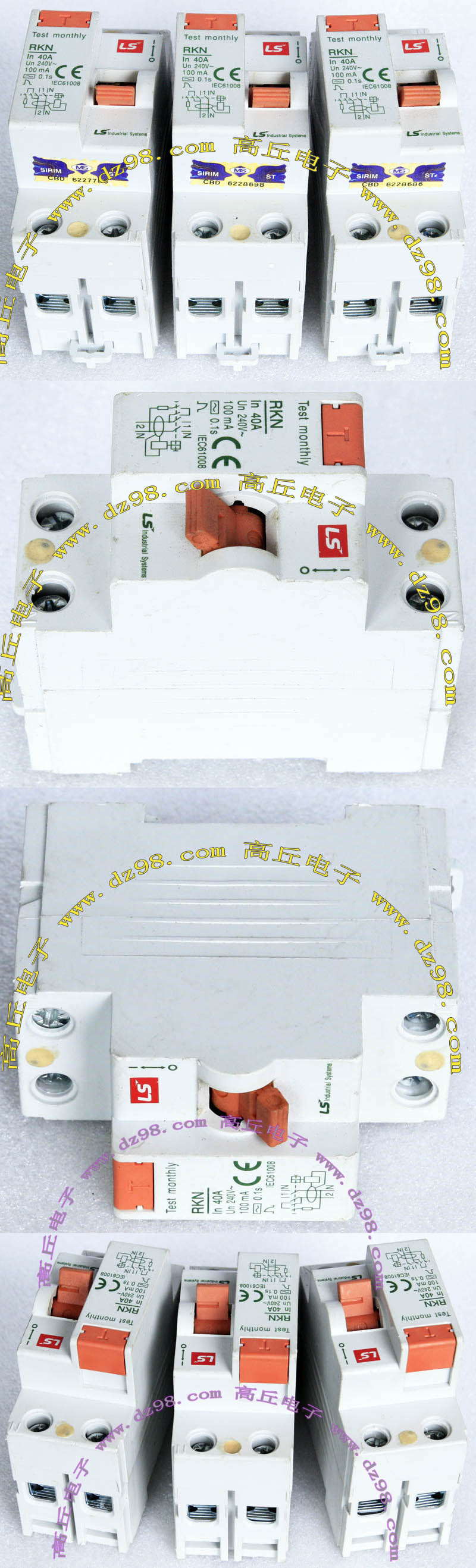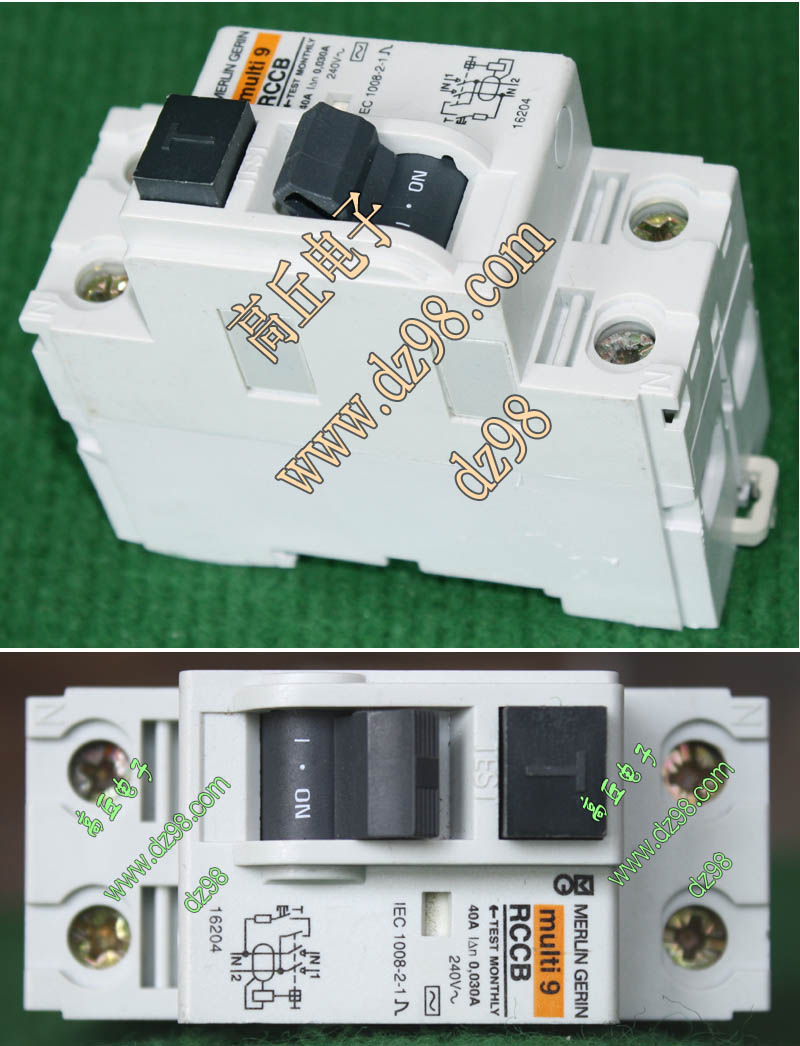 进口拆机,实物看图,230V 40A,漏电动作电流0.03A。重量约200克。