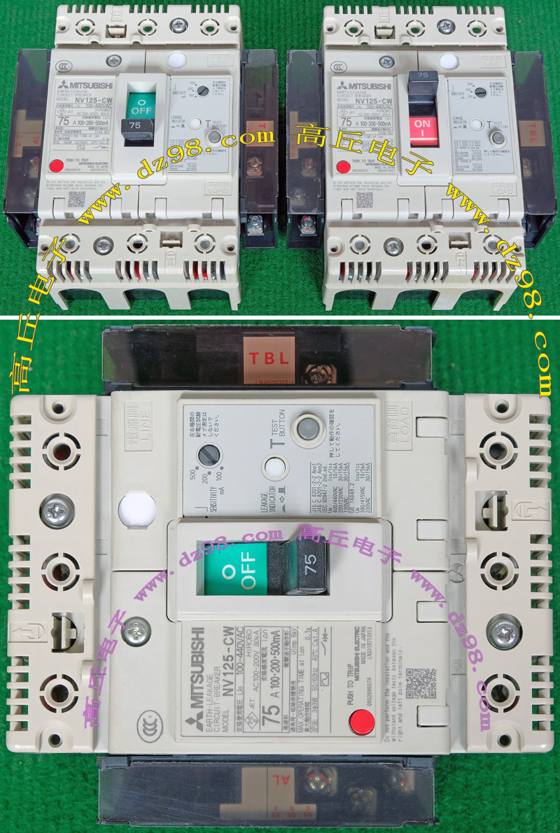 日本MITSUBISHI三菱NV125-CW 75A三相三线漏电开关CD196