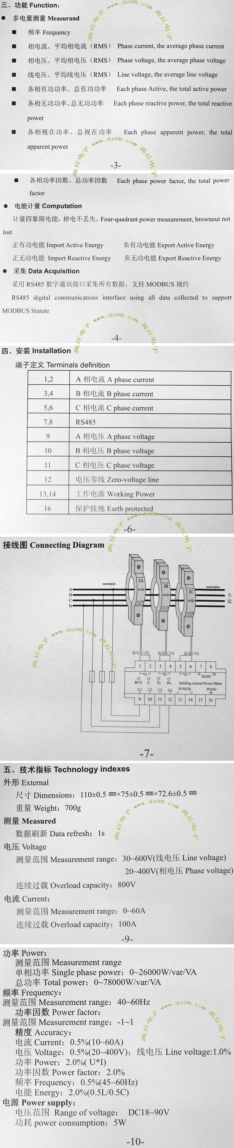 二手 | 实物如图,电压、电流、功率、频率显示。范围:电压0-500VAC,电流0-50A。 |