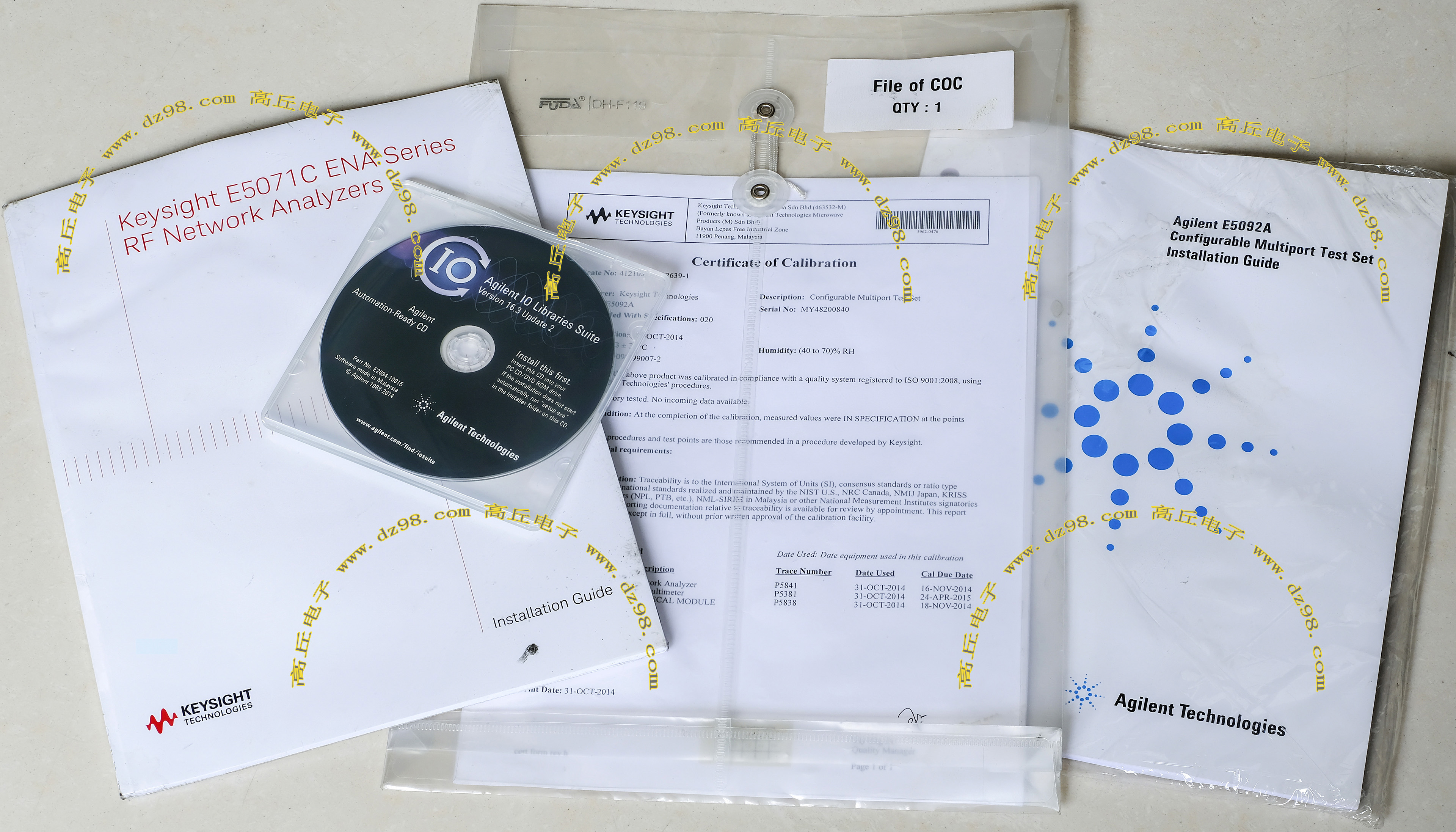 | 全新设备附件 1光盘+2本手册 E5071C E5092A商品编号CE191 | 全新 | 全新附件,光盘一张(Agilent IO Libraries Suite Automation-Ready CD)、资料袋一个(袋内4页资料)、E5071C手册一本、E5092A手册一本。 |