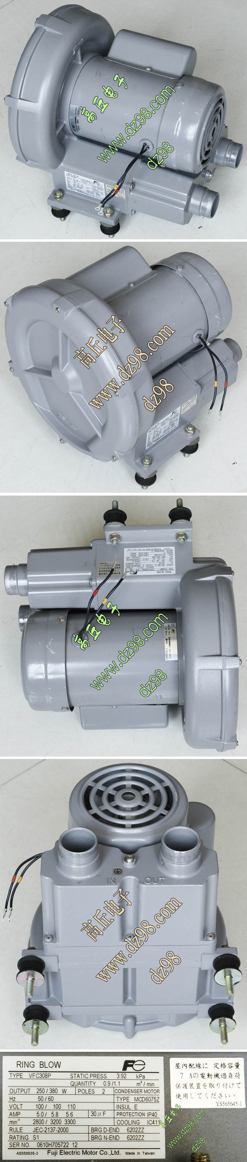| 日本FUJI富士 VFC308P单相100V 420/560W强力风泵CH110 | 拆机件,外观约9成新,实物如图,产地:TAIWAN,电压:单相交流100V,频率50/60Hz,每分钟转速2800/3300。流量:每分钟0.9/1.1立方米,重量约11公斤。 | 单价580元。 |