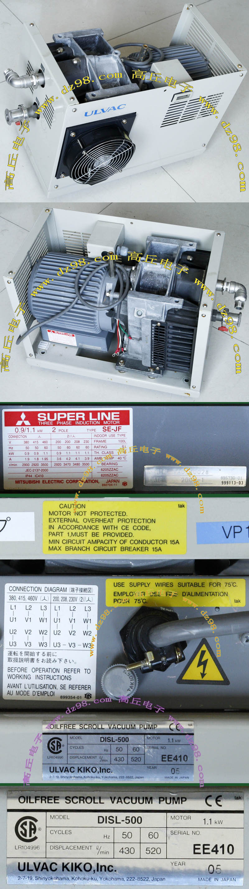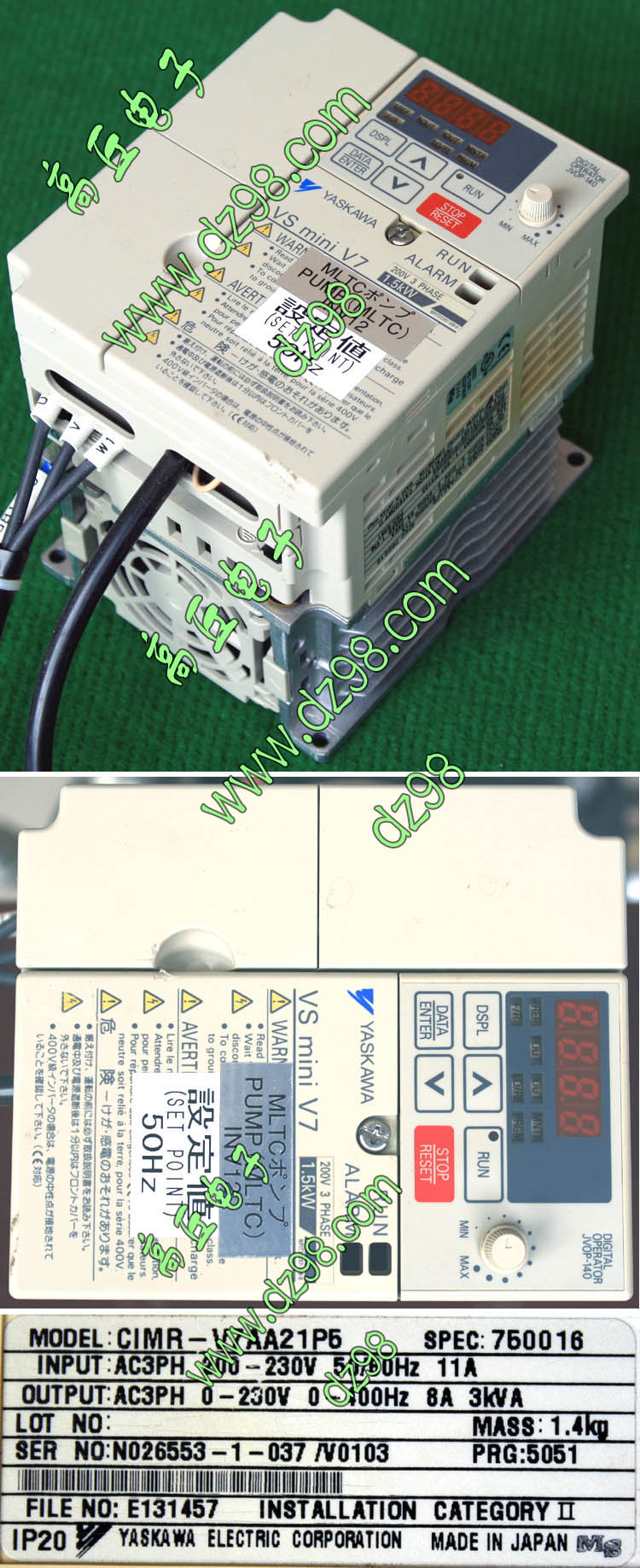 拆机件,外观8成新,是从进口工业设备上成套拆下的。 电机数据;产地:日本,厂牌:NLKUNI,三相200-220V,频率50/60Hz,功率1.5KW,泵体采用全不锈钢制,在电机的尾部装有一块圆型不锈钢不知道是什么特殊用途。 变频器数据:产地:日本,厂牌:YASKAWA,功率3KVA。 详细请看下面的放大图片连接 |