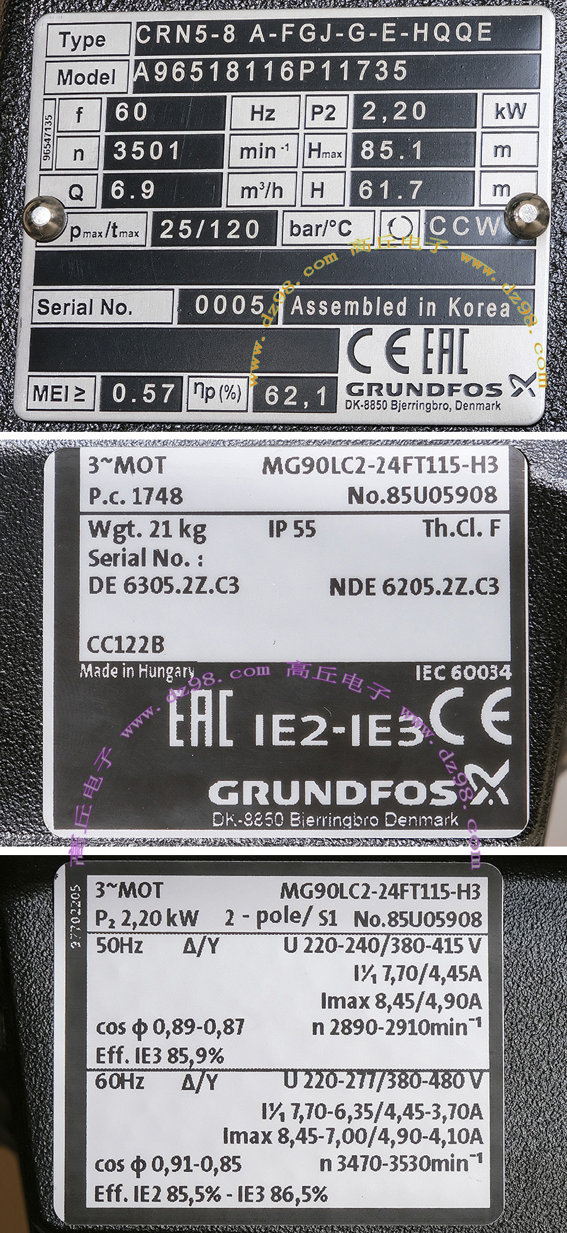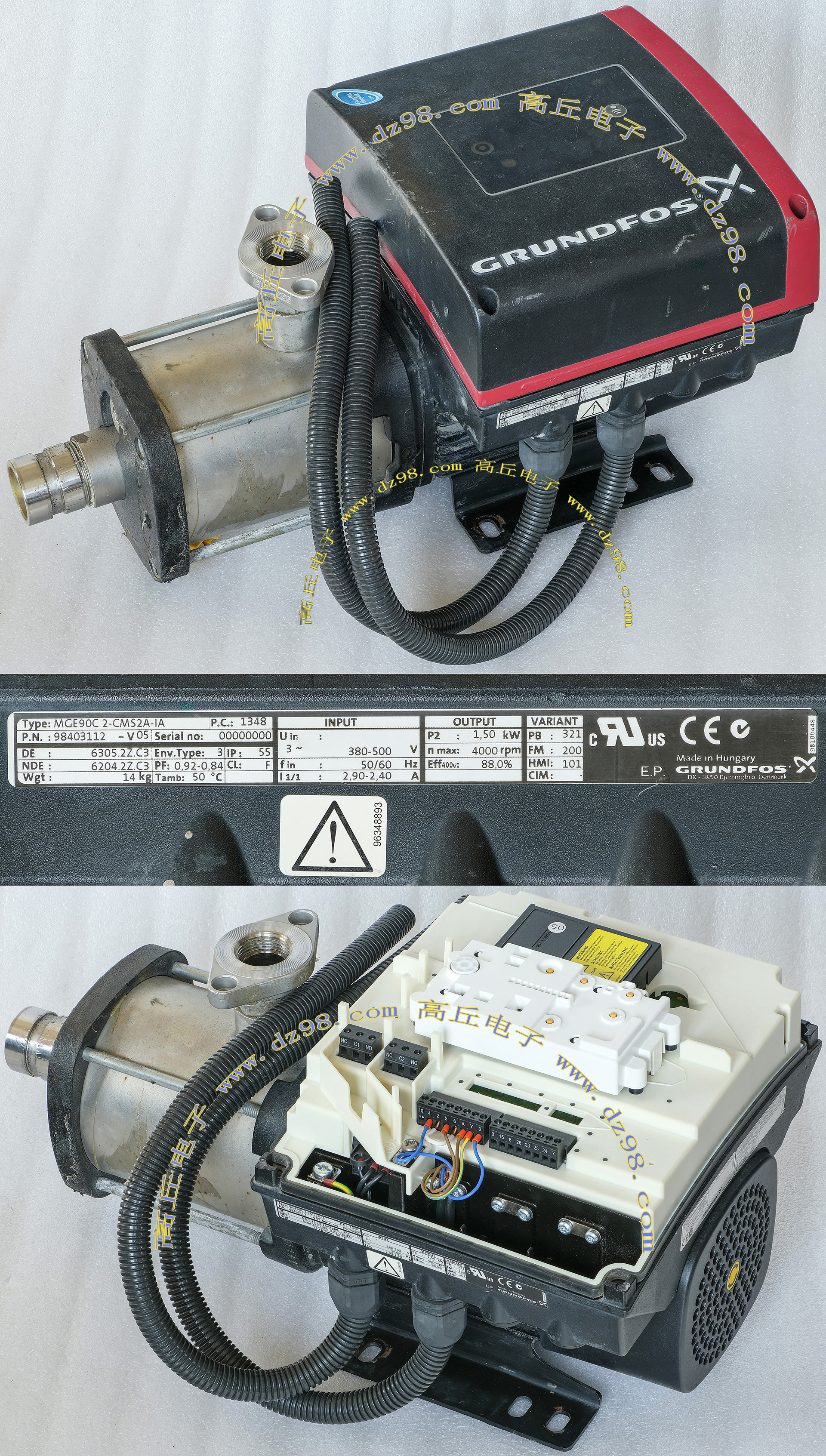 | 瑞士GRUNDFOS格兰富MGE90C2-CMS2A-IA 380/500V 1.5KW水泵CH153 | 进口拆机,产地;匈牙利,使用电压三相380V或500V,频率50/60Hz,功率1500W。 |