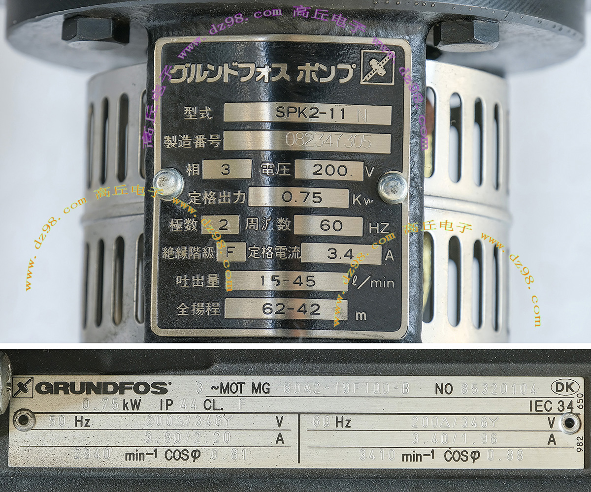 | 瑞士GRUNDFOS格兰富SPK2-11 N 三相200V/346V 0.75KW水泵CH156 | 进口拆机,使用电压三相200V或346V,频率60Hz,功率750W。扬程62-42米,流量每小时0.9-2.7立方米。 |