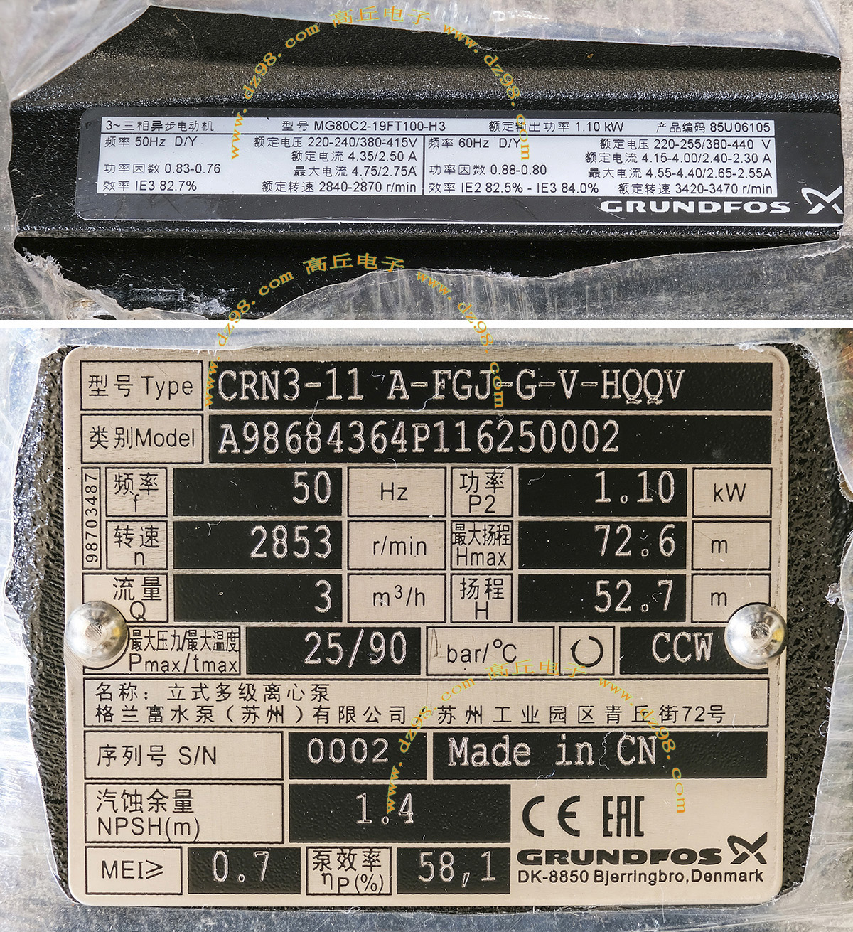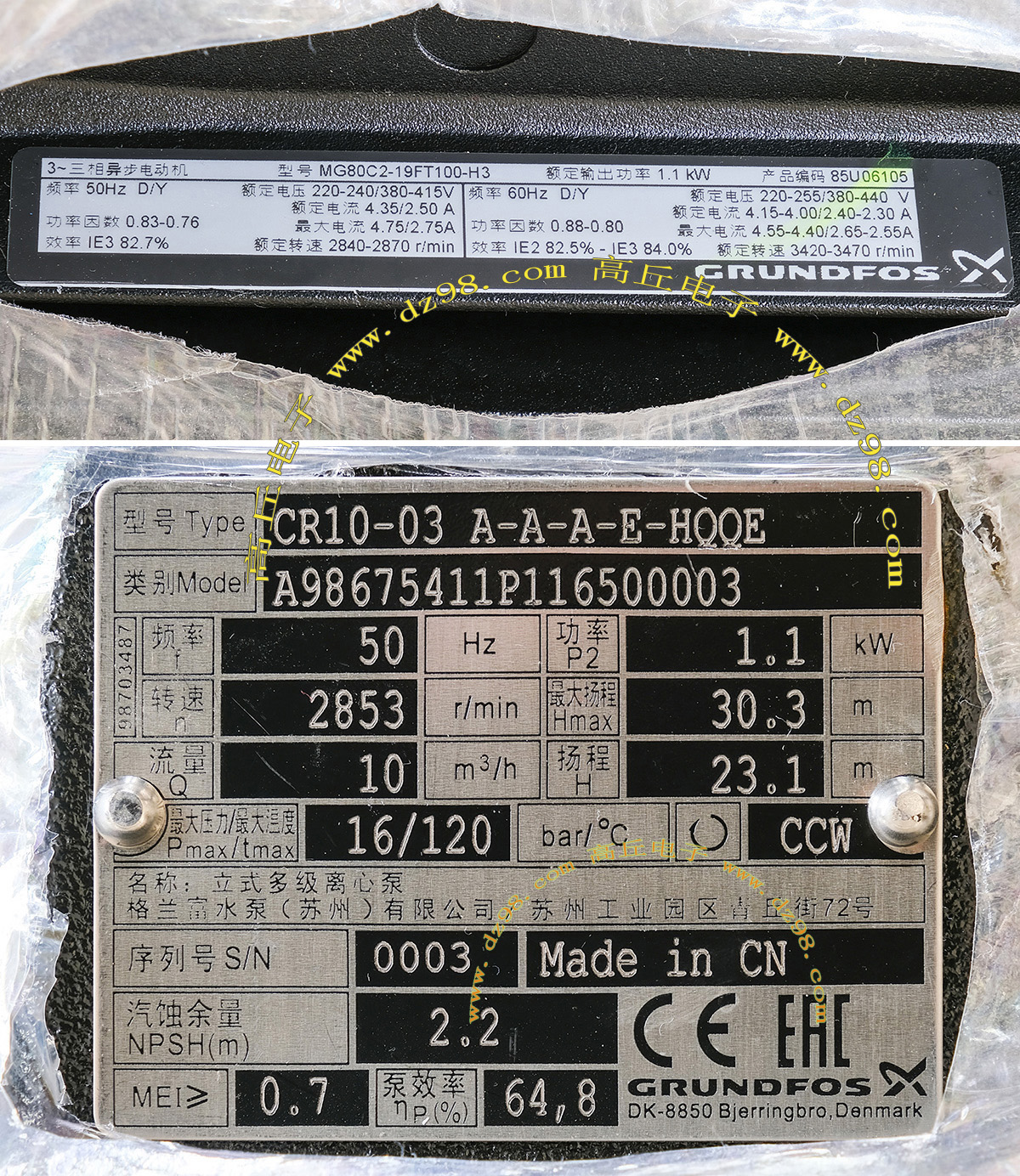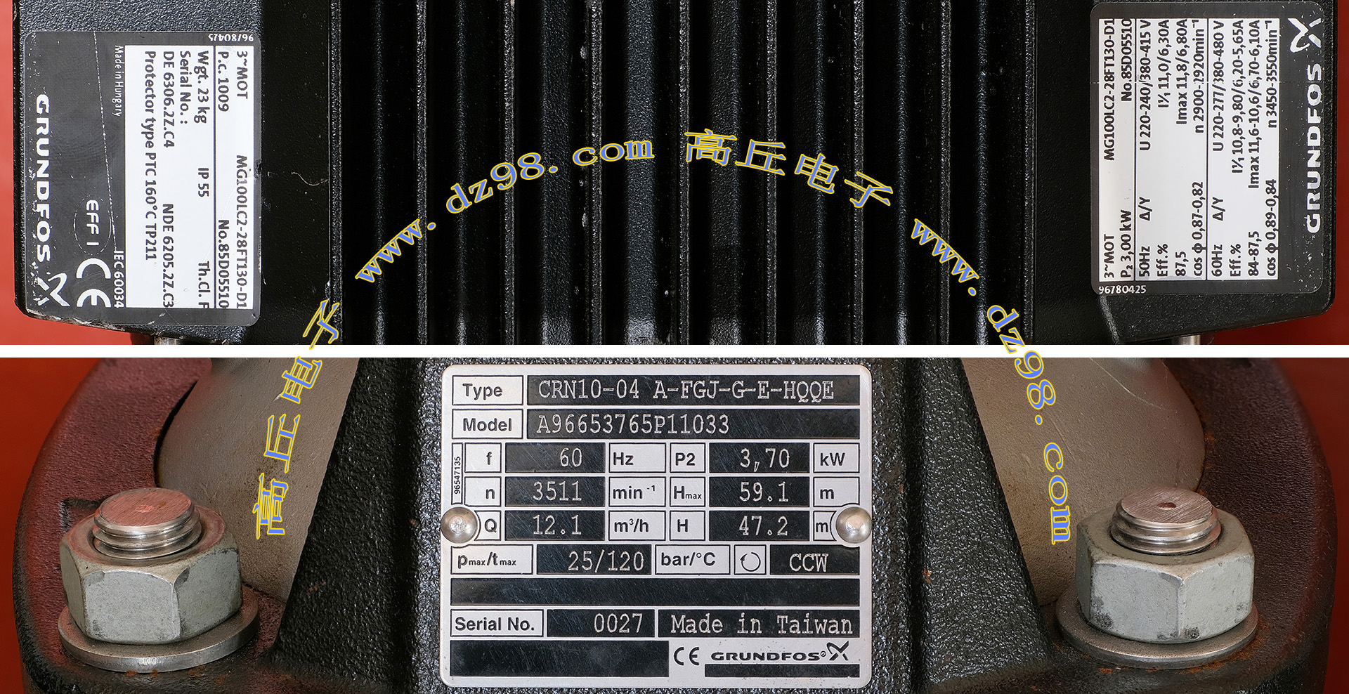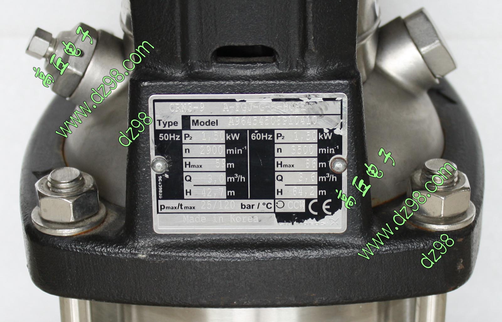 | GRUNDFOS格兰富CRN10-04 三相220V/380V 3KW-3.7KW水泵CH158 | 进口拆机,使用电压三相380-415V,功率3000W。扬程47.2米,流量每小时12.1立方米。 |