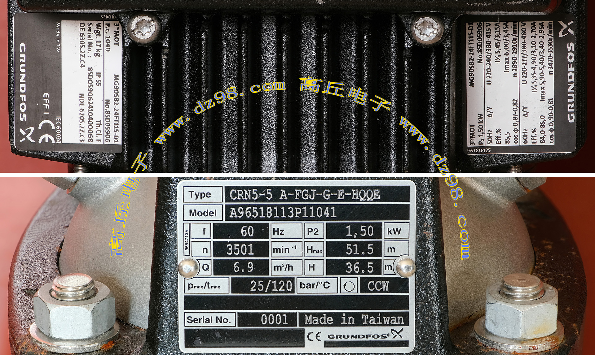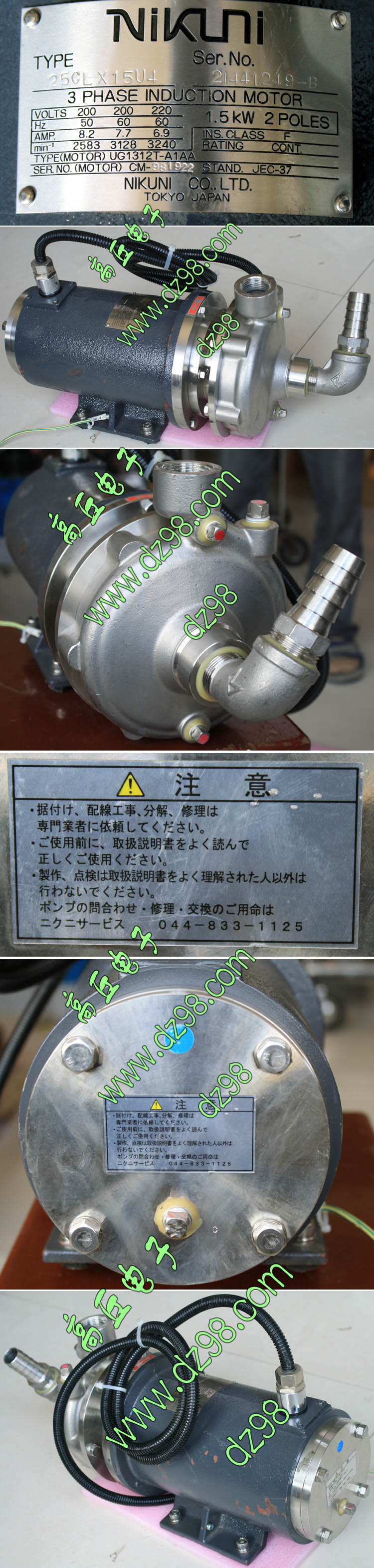 进口拆机,使用电压三相200V-220V/380-415V,功率1500W。扬程51.5米,流量每小时6.9立方米。 |