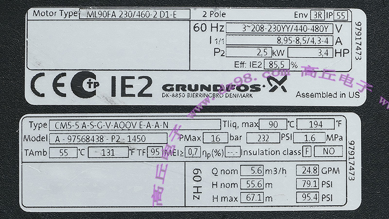 | GRUNDFOS格兰富 5.6立方 扬程55.6米 三相2.5KW水泵CH165 | 进口拆机,实物看图,使用电压三相208V-230V/440-480V,功率2500W。扬程55.6-67.1米,流量每小时5.6立方米。 重量约26.5公斤。 |
