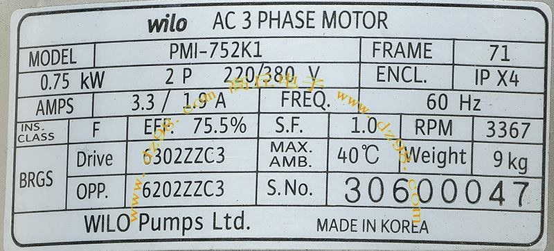 | WILO威乐PMI-752K1 0.75KW 220V/380V三相水泵CH198 | 进口拆机,实物看图片,重量约9公斤。 |