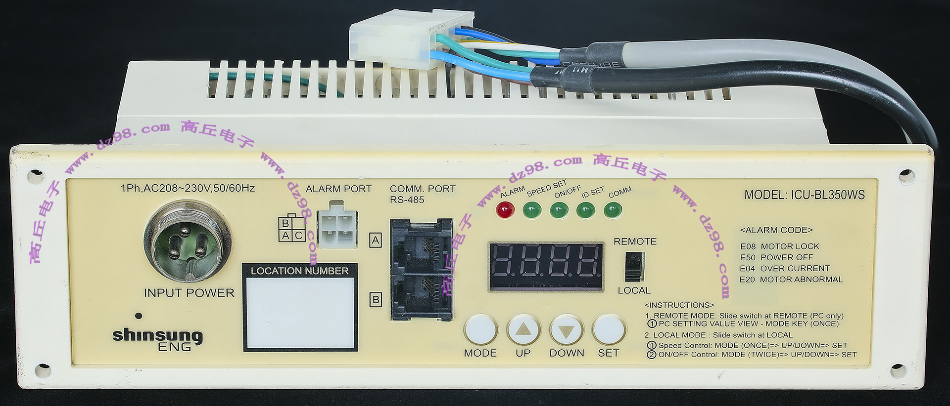 | shinsung ICU-BL350WS 控制器CH205 | 进口拆机,实物参照图片,外形尺寸;240x68x100毫米,重量约660克。 |