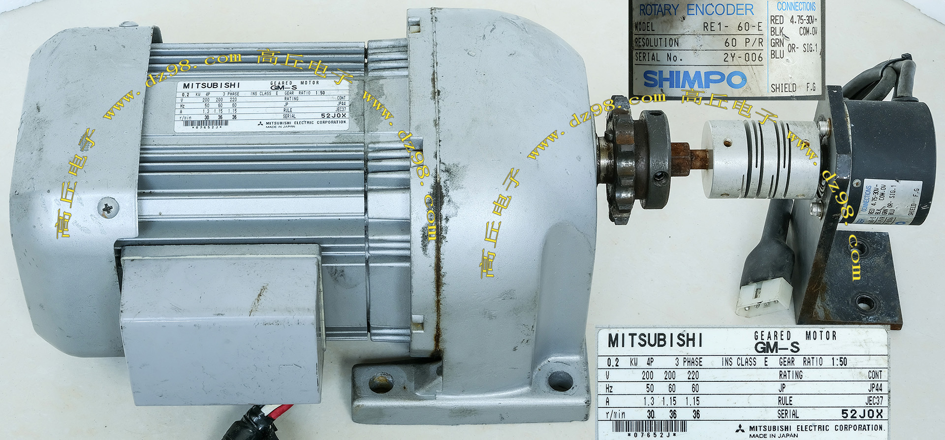 | GM-S 0.2KW 三菱减速电机 带RE1-60-E旋转编码器CH208 | 进口拆机,实物参照图片,重量约7.6公斤。 |