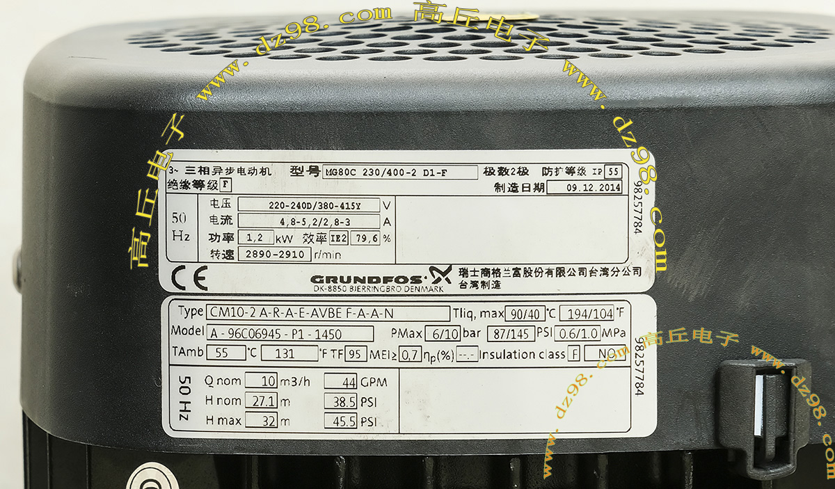 | GRUNDFOS格兰富TP25-90/2 7.88立方 扬程7.93米 三相220V-380-440V 0.37KW立式离心泵 管道循环水泵CH219 | 进口全新原装,实物看图,使用电压三相220V-240V/380-415V,功率370W。扬程7.93米,流量每小时7.88立方米。重量约12公斤。 |