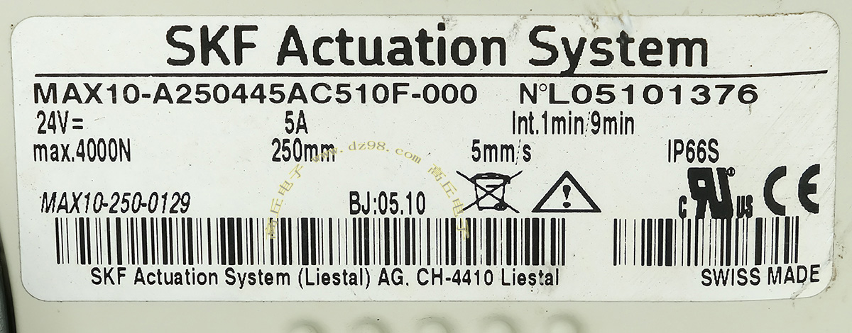 | 瑞士 SKF Actuation System MAX10-A250445AC510F-000 24V 5A电动推杆CH224 |