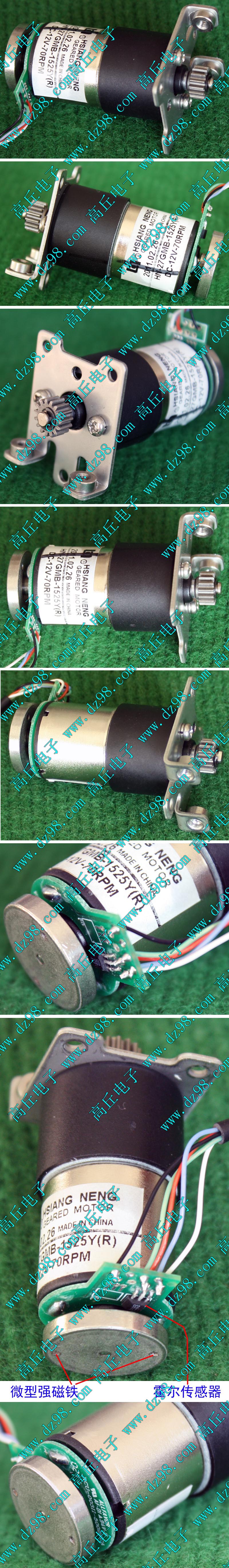 全新拆机件,只装配成品就被拆下,东西实物图片,厂牌:HSIANG NENG台湾祥能精机,产地:CHINA,电压12V,减速后每分钟70转。重量约84克。本电机与厂家公布的资料有些不同:电机减速轴带一齿轮,减速箱处配装一不锈铁安装固定脚架,电机后输出轴(未减速)装有霍尔传感器和磁铁转盘(这套零件如不需要可以拆掉,拆掉后就有高转速轴输出了)。 厂家网页供参考http://www.hsiangnengmotors.com.tw/gh01.htm#gh02 |