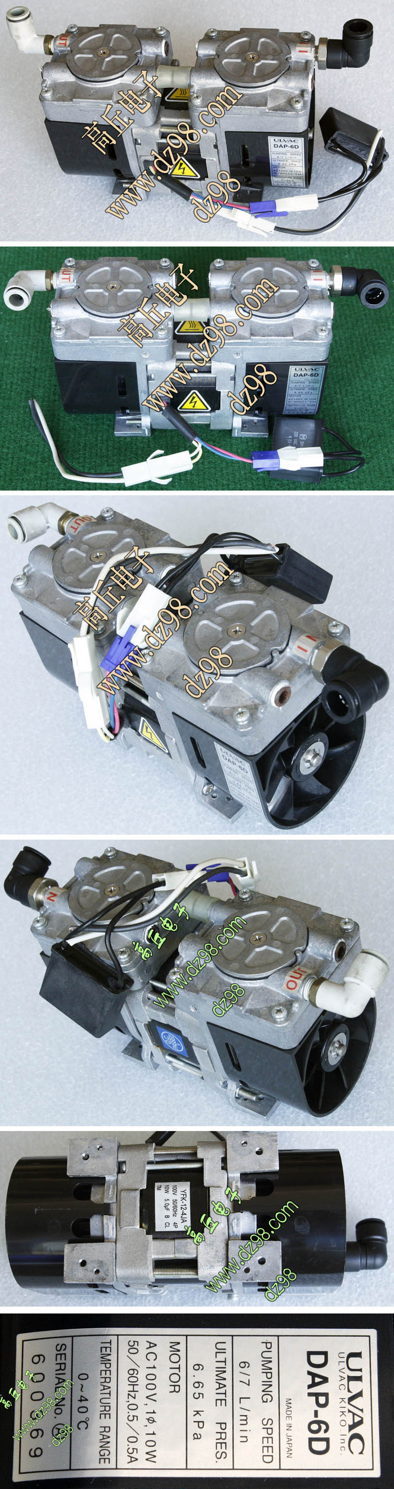 | ULVAC DAP-6D 100V 10W 双头气泵CH176 | 拆机件,外观约8成新,外形尺寸:长度160毫米(不包含气管接头)x68毫米x96毫米,重量约1.7公斤。电压AC100V,功率10W,频率50/60Hz。 |